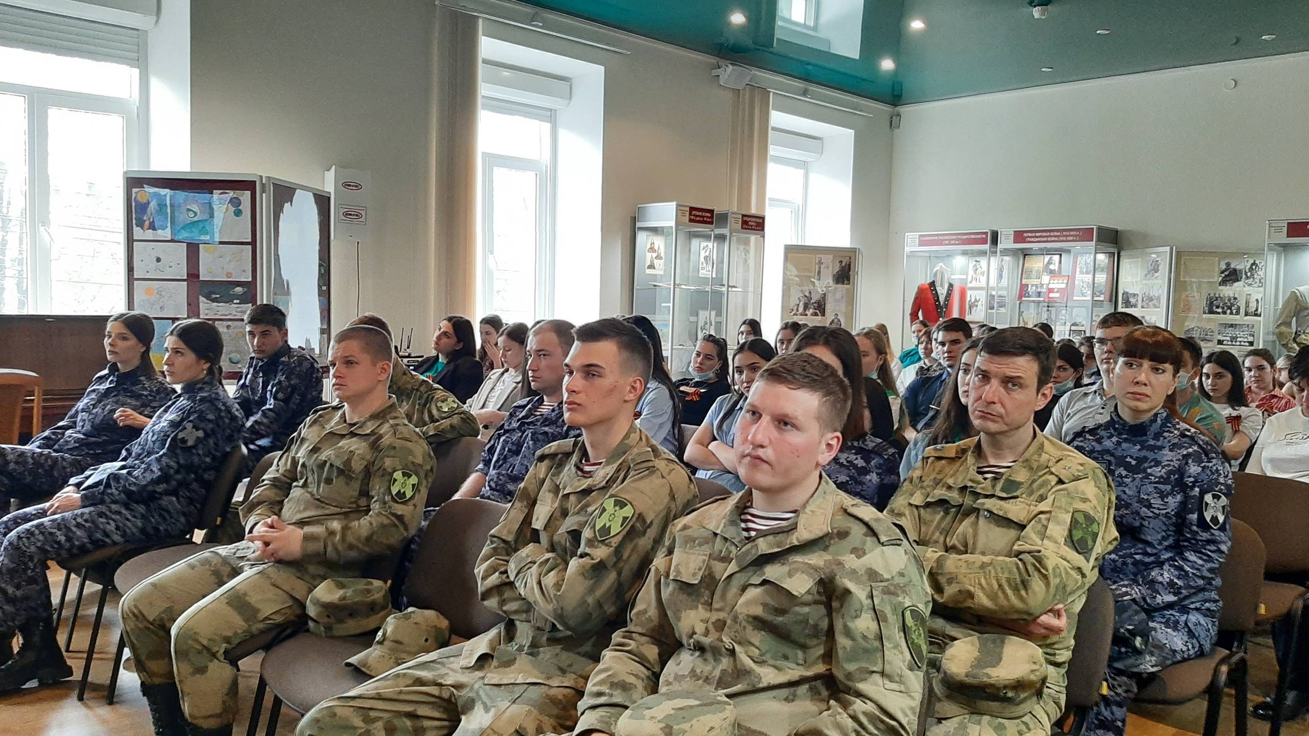 Особое внимание было уделено украинскому вопросу с 2014 года по настоящее время. Каменева Г.Н. продемонстрировала, какое важное военно-политическое, стратегическое значение имело присоединение Крымского полуострова в 2014 году, как это отразилось на внешнеполитической обстановке в мире. Она рассказала о восьмилетней борьбе населения Донецкой и Луганской Народных Республик с украинскими националистами, значимости принятого Президентом Российской Федерации решения о начале проведения спецоперации на Украине, героизме наших солдат, стоящих на защите безопасности и мира в нашей стране. В память о всех павших военнослужащих в ходе военной операции на Украине состоялась минута молчания.