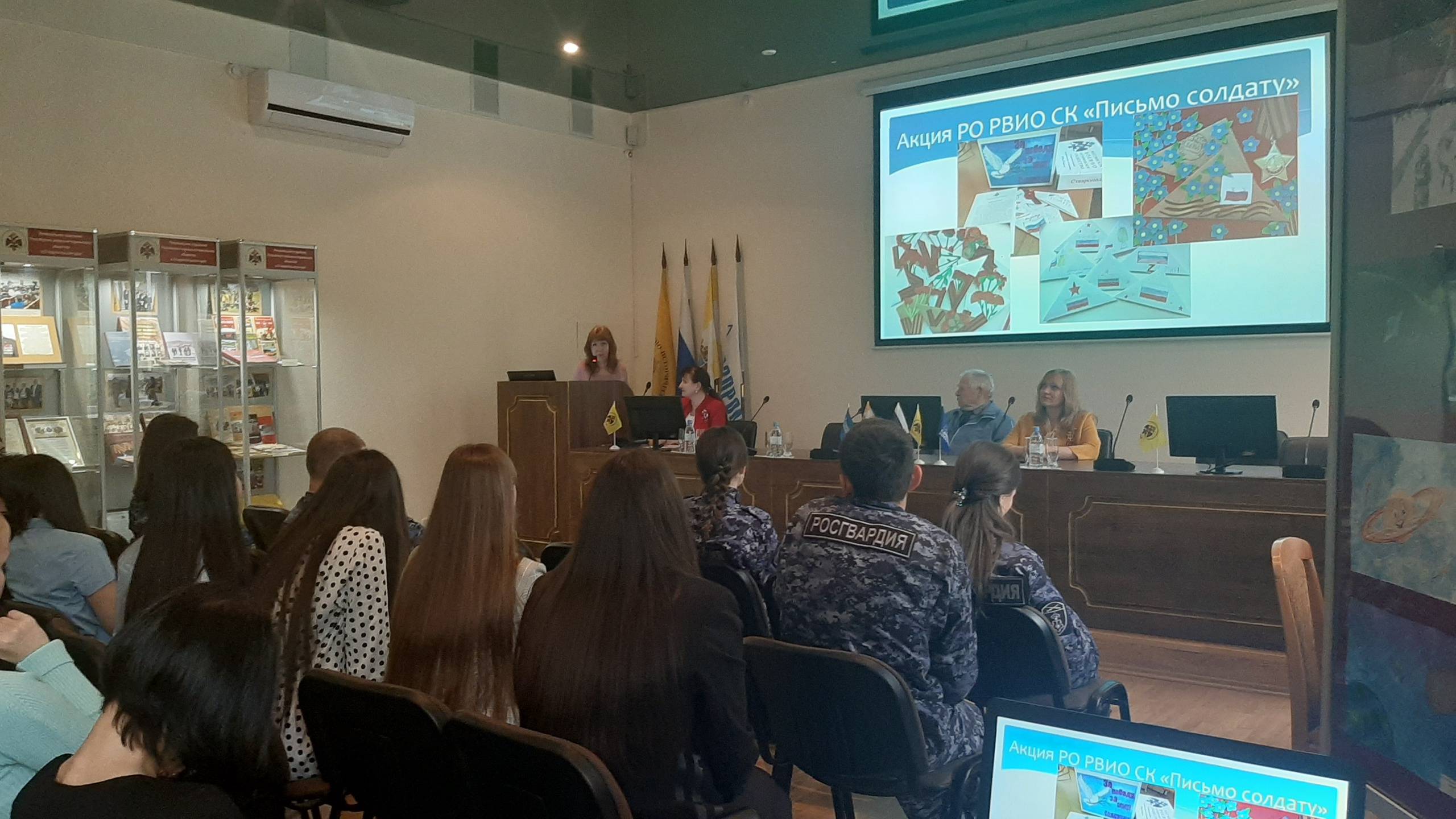 Ставропольский край одним из первых начал собирать гуманитарную помощь для жителей ДНР и ЛНР, создавать пункты временного размещения беженцев. Участникам мероприятия рассказали об уже отправленных гуманитарных караванах, о пунктах сбора, о том, как каждый присутствующий может оказать помощь. Кроме того, Каменева Г.Н. рассказала об акции РО РВИО СК «Письмо солдату», направленной на поддержание морального духа военнослужащих.