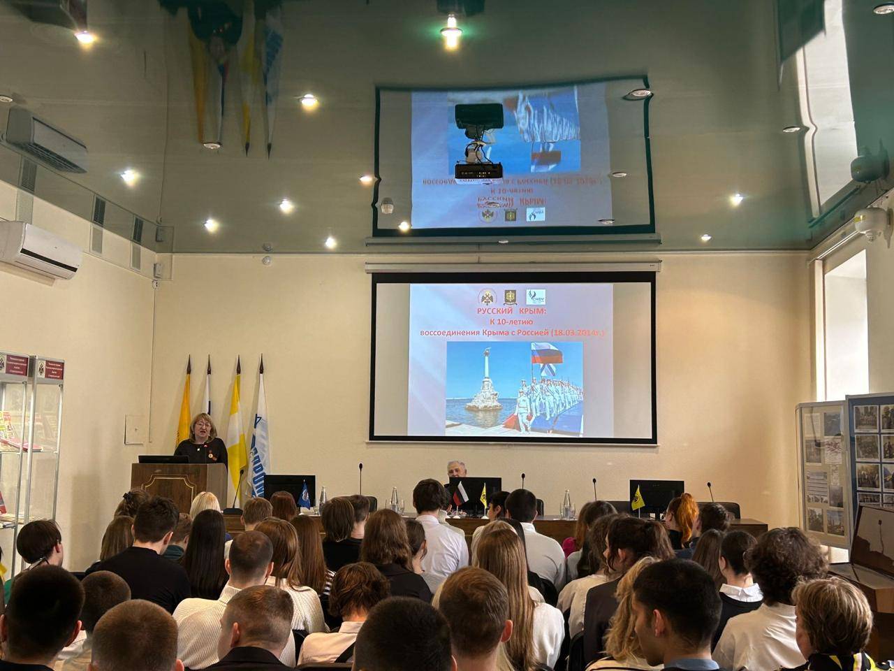 15 марта 2024 г. на базе конференц-зала Регионального отделения Российского военно-исторического общества в Ставропольском крае состоялся круглый стол «Русский Крым», посвящённый 10-й годовщине воссоединения Крыма с Россией.
