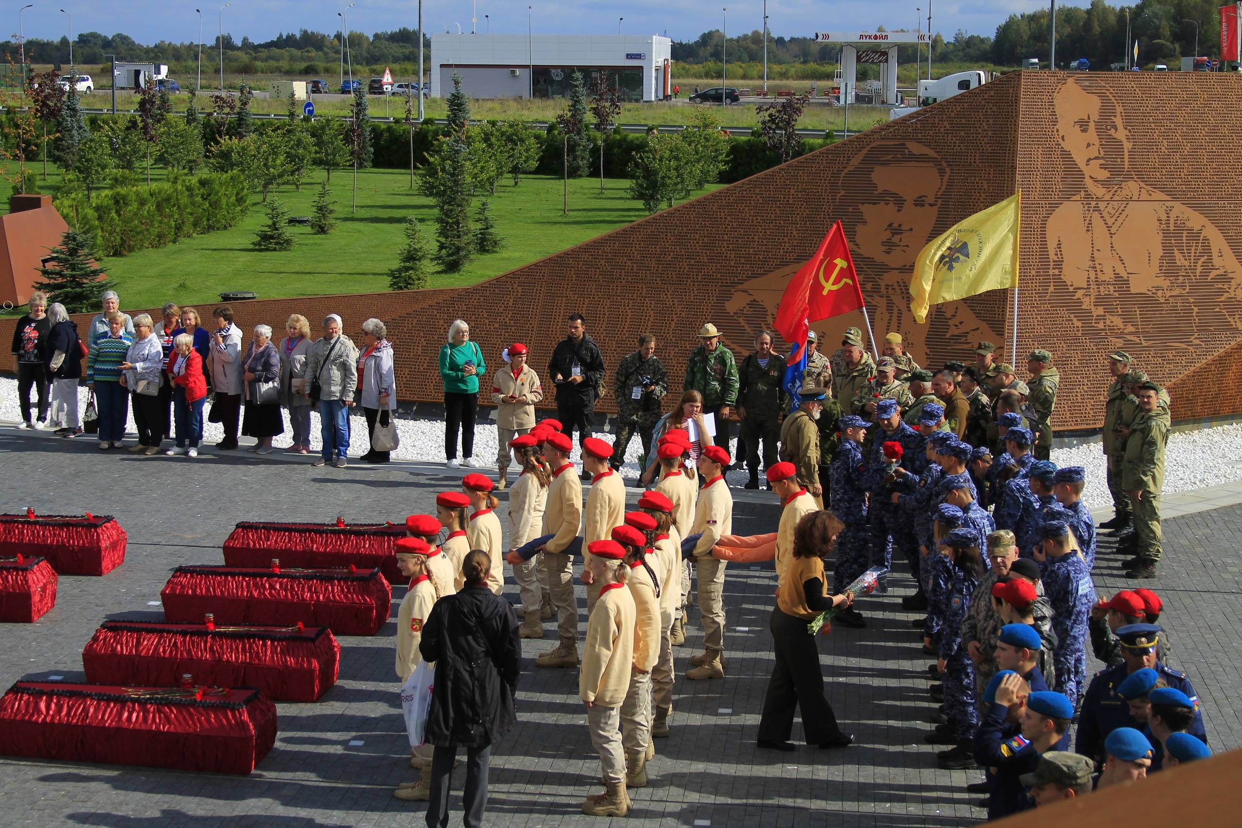 На церемонии закрытия экспедиции участники поисковых отрядов и гости церемонии почтили память защитников Родины минутой молчания и возложили цветы к Ржевскому мемориалу Советскому солдату.