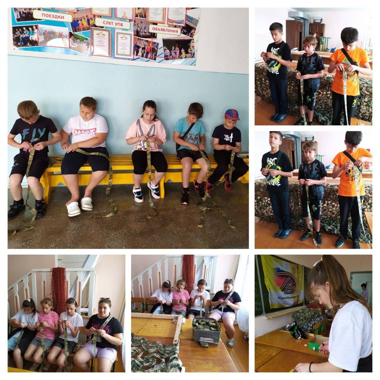 Также активное неоднократное участие в плетении маскировочных сетей принимают воспитанники Историко-краеведческого музея «Истоки» имени полного кавалера орденов Славы М.Ф. Гусева (руководитель – Мирошниченко Т.Н., член РО РВИО СК) МБОУ СОШ №8 им. А.В. Грязнова с. Тищенского (директор, член РО РВИО СК – С.С. Князева) Изобильненского городского округа и учащиеся и педагоги МБОУ СОШ №7 г. Ставрополя, члены клуба «Юный патриот» РО РВИО СК.