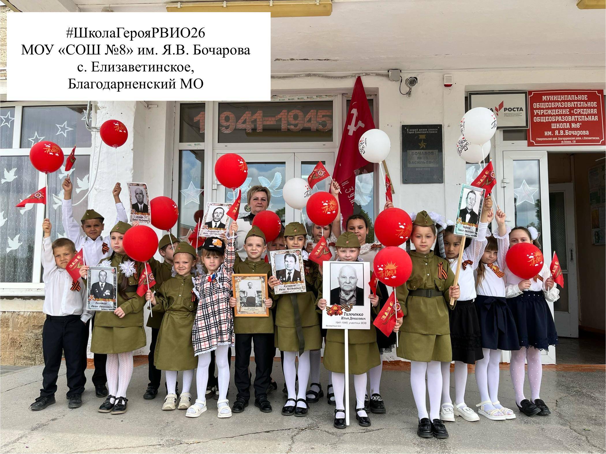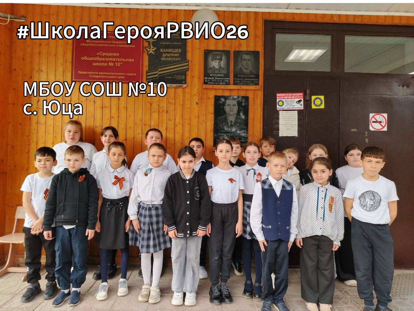 Накануне праздника к участию в акции «Школа Героя» присоединились обучающиеся МБОУ СОШ №10 г. Ессентуки, МКОУ СОШ №17 с. Сунжа, МБОУ СОШ №26 пос. Ясная Поляна, МОУ СОШ №5 с. Спасского, МБОУ СОШ №6 г. Пятигорска и МОУ «СОШ №8» с. Елизаветинского.