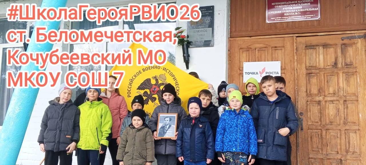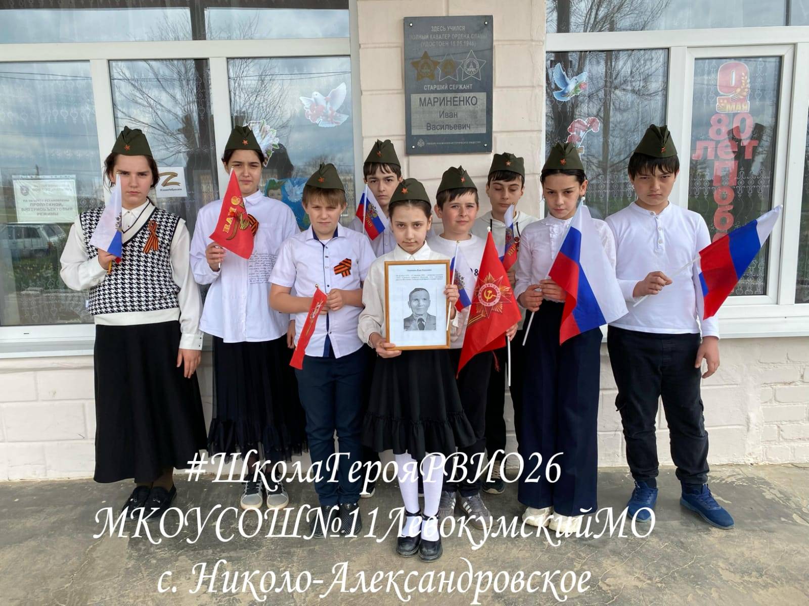 На этот раз к участию в патриотической акции «Школа Героя», инициированной Ставропольским региональным отделением Российского военно-исторического общества (РО РВИО СК), присоединились учащиеся школ Александровского, Ипатовского, Кочубеевского, Левокумского, Предгорного, Труновского и Туркменского муниципальных округов. Ребята познакомились с биографиями героев, в честь которых установлены мемориальные доски на зданиях школ, и почтили память тех, кто пал смертью храбрых, защищая Родину.