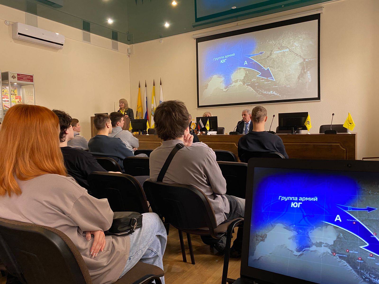 В ходе мероприятия студенты и исторические эксперты в лице Судавцова Н.Д., д.и.н., главного научного сотрудника отдела военной истории и патриотической работы СГМЗ, одного из учредителей РО РВИО СК, и Стрекаловой Е.Н., к.и.н., доцента кафедры истории России СКФУ, старшего научного сотрудника отдела военной истории и патриотической работы СГМЗ, члена РО РВИО СК, поговорили об основных этапах оккупации и освобождения Ставрополья от немецко-фашистских захватчиков, обсудили значение Битвы за Кавказ в ходе Великой Отечественной войны, методы противодействия фальсификации истории.