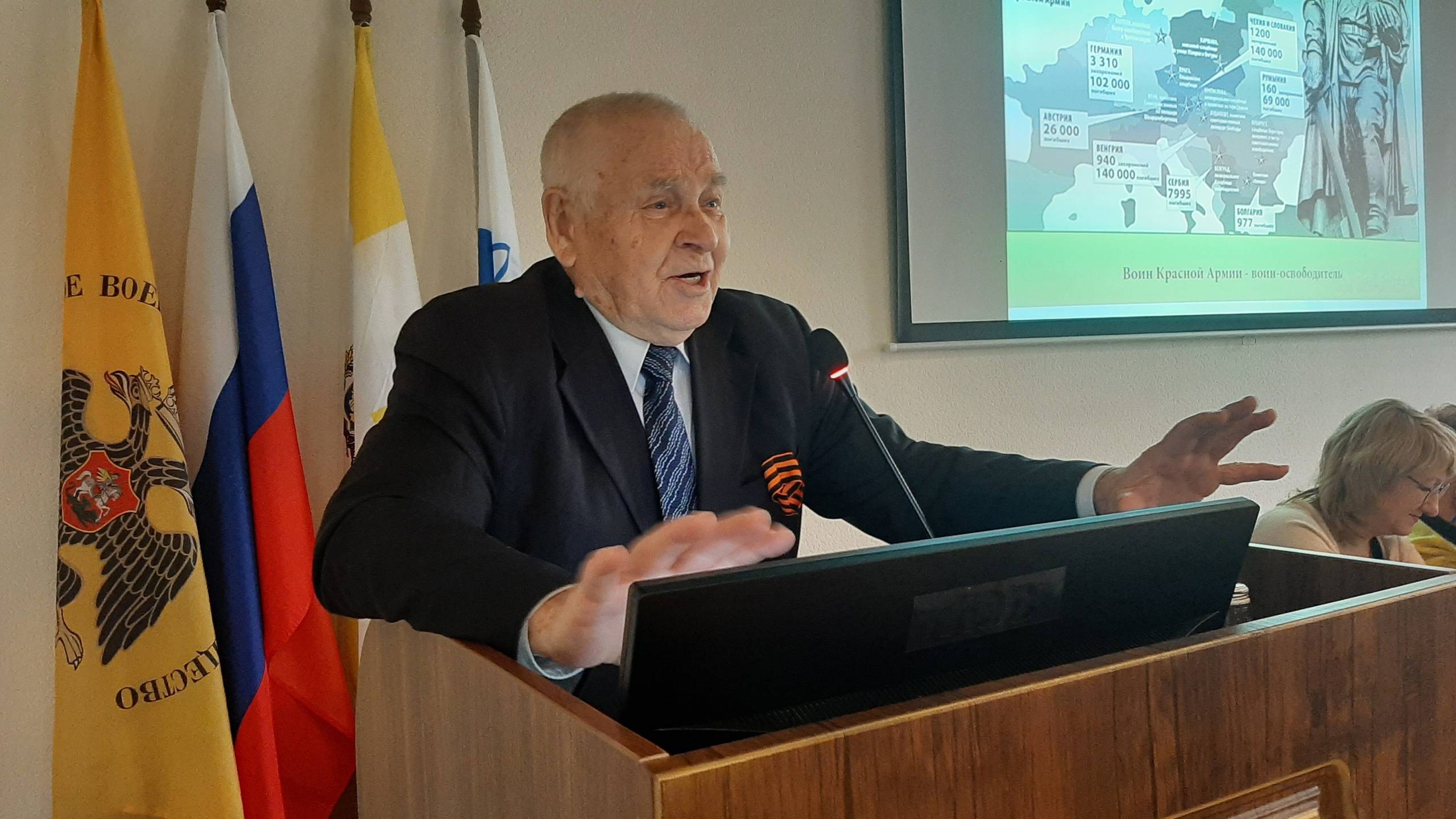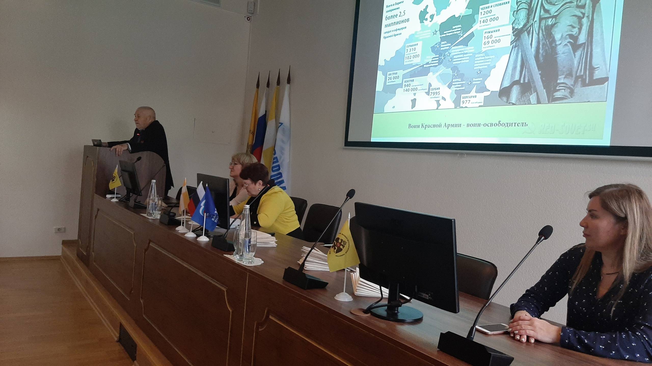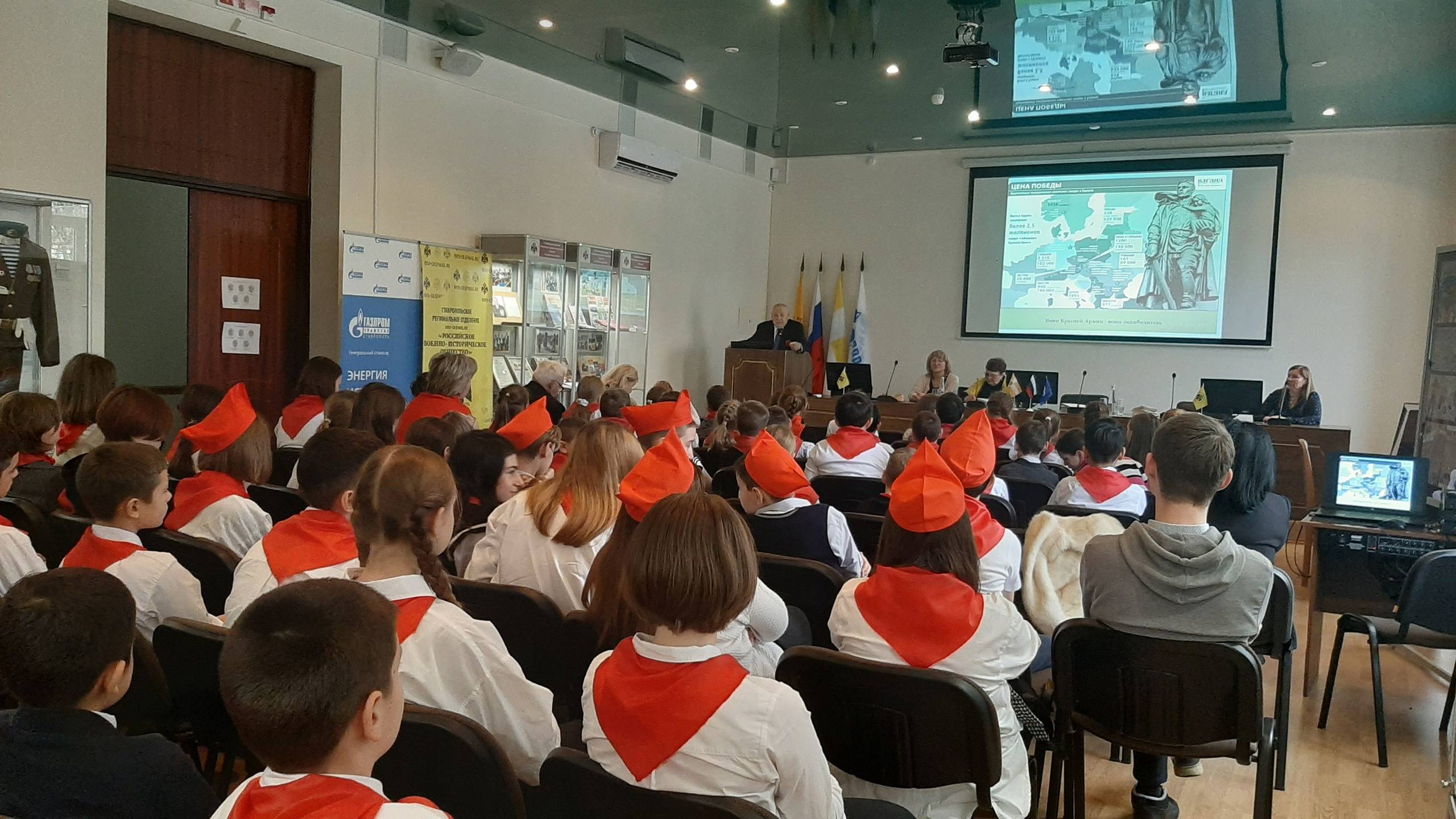 Судавцов Н.Д. уделил отдельное внимание главному событию в истории СССР – Великой Отечественной войне. В частности он рассказал о единстве народов СССР, которые плечом к плечу защищали свою Родину. В ходе своего выступления профессор представил факты участия детей в борьбе с немецко-фашистскими оккупантами, которые вместе с отцами, старшими братьями и сестрами по зову сердца с оружием в руках шли в бой, сражались в партизанских отрядах, были членами подпольных организаций, разведчиками и связистами, сестрами милосердия и подрывщиками, а также всеми силами помогали в тылу.