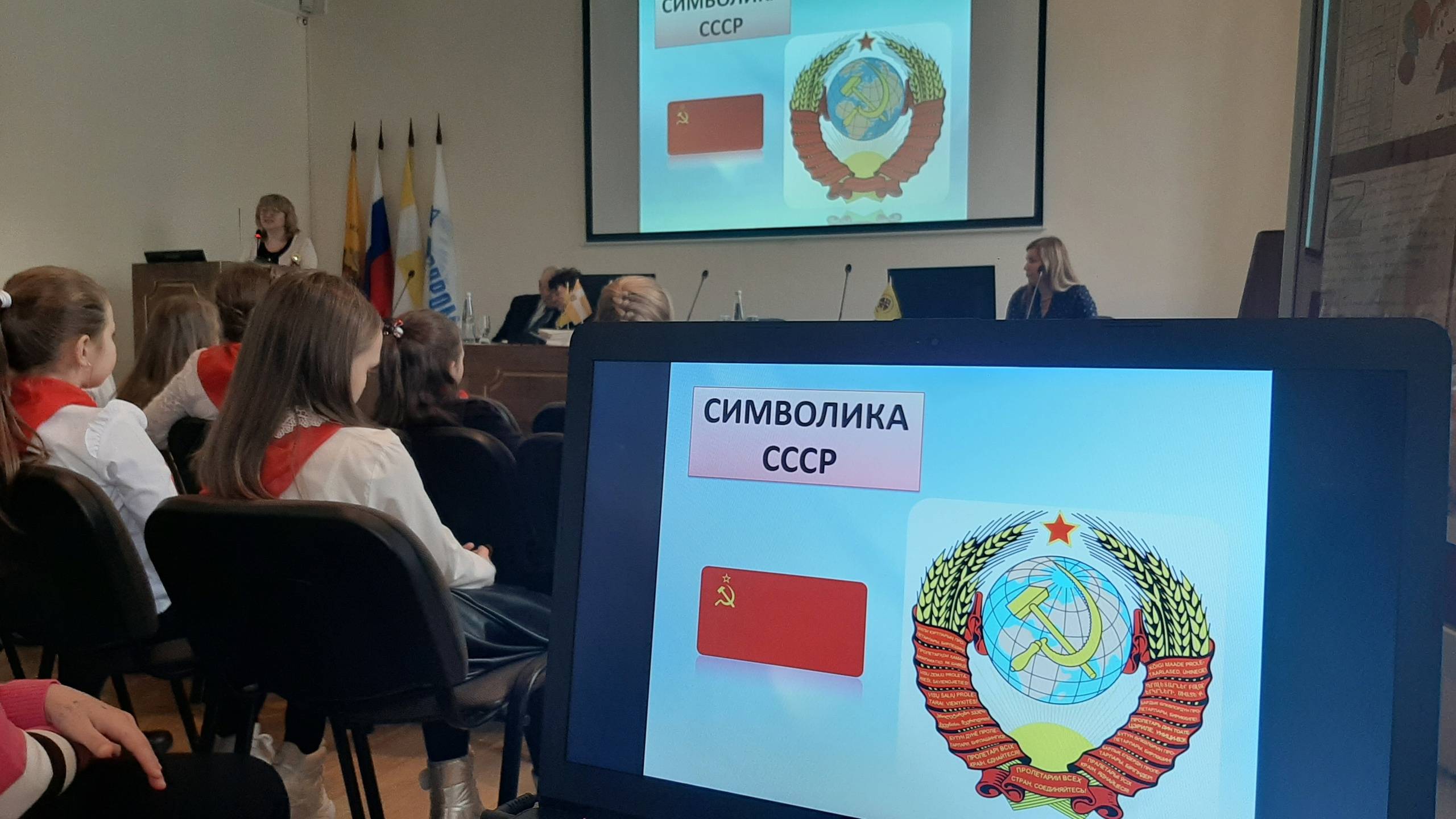 Стрекалова Е.Н. рассказала о важнейшем для истории России событии – создании 30 декабря 1922 года Союза Советских Социалистических Республик, о республиках, которые входили в состав единого государства, о триумфальных достижениях науки, производства, здравоохранения, культуры и спорта.