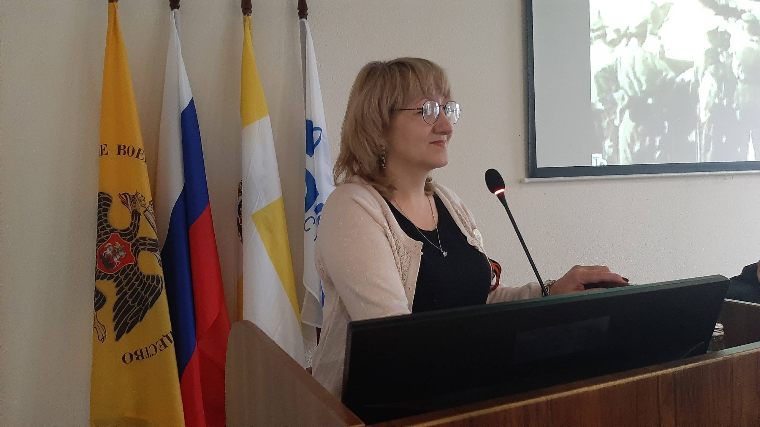 Вела мероприятие Е.Н. Стрекалова, к.и.н., доцент кафедры истории России Гуманитарного института СКФУ, старший научный сотрудник отдела военной истории и патриотической работы СГМЗ, член РО РВИО СК.