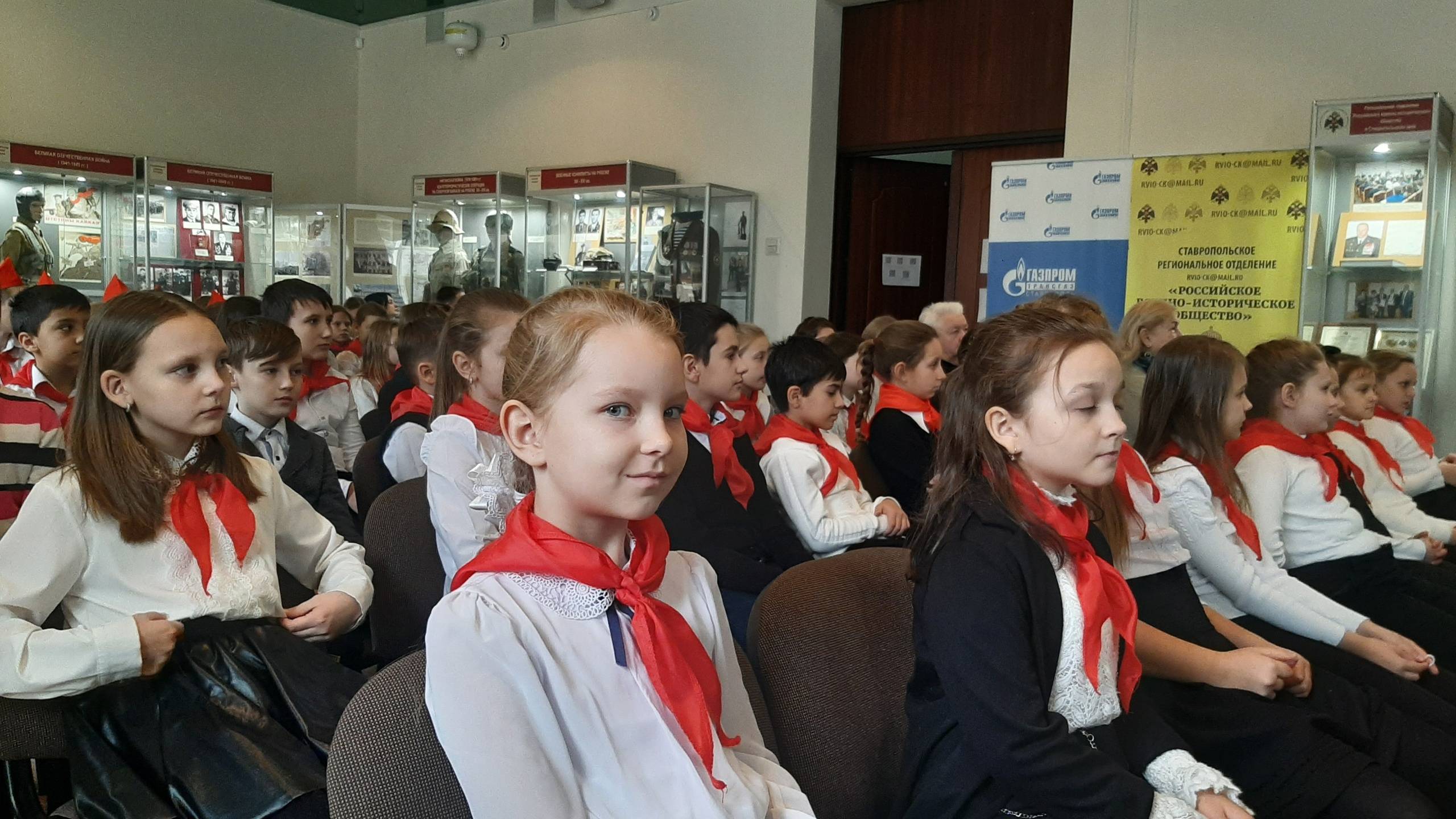 На мероприятии присутствовали: Н.Д. Судавцов, д.и.н., Почетный профессор Северо-Кавказского федерального университета (СКФУ), главный научный сотрудник отдела военной истории и патриотической работы СГМЗ, один из учредителей РО РВИО СК; Л.Н. Папенина, член краевого совета пионерской организации; Н.В. Афонина, руководитель СКОДО «Пионеры Ставропольского края»; учащиеся и педагоги гимназии №9, лицея №10 и МБОУ СОШ №43, 45, 64 города Ставрополя; музейные научные сотрудники; члены РО РВИО СК.