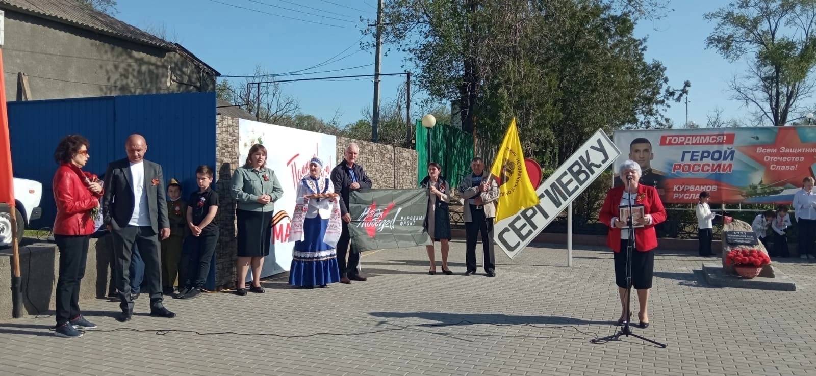 7 мая 2023 года в с. Сергиевское Граческого муниципального округа прибыли участники патриотического краевого автопробега «Эх, путь-дорожка фронтовая». Их встречали представители администрации, учащиеся и педагоги школы, активисты РО РВИО СК – З.И. Петрова, Г.М. Жалыбина, Н.И. Степаненко. Стать участником разворачивания увеличенной копии Знамени Победы – особая гордость и честь для жителей села.
