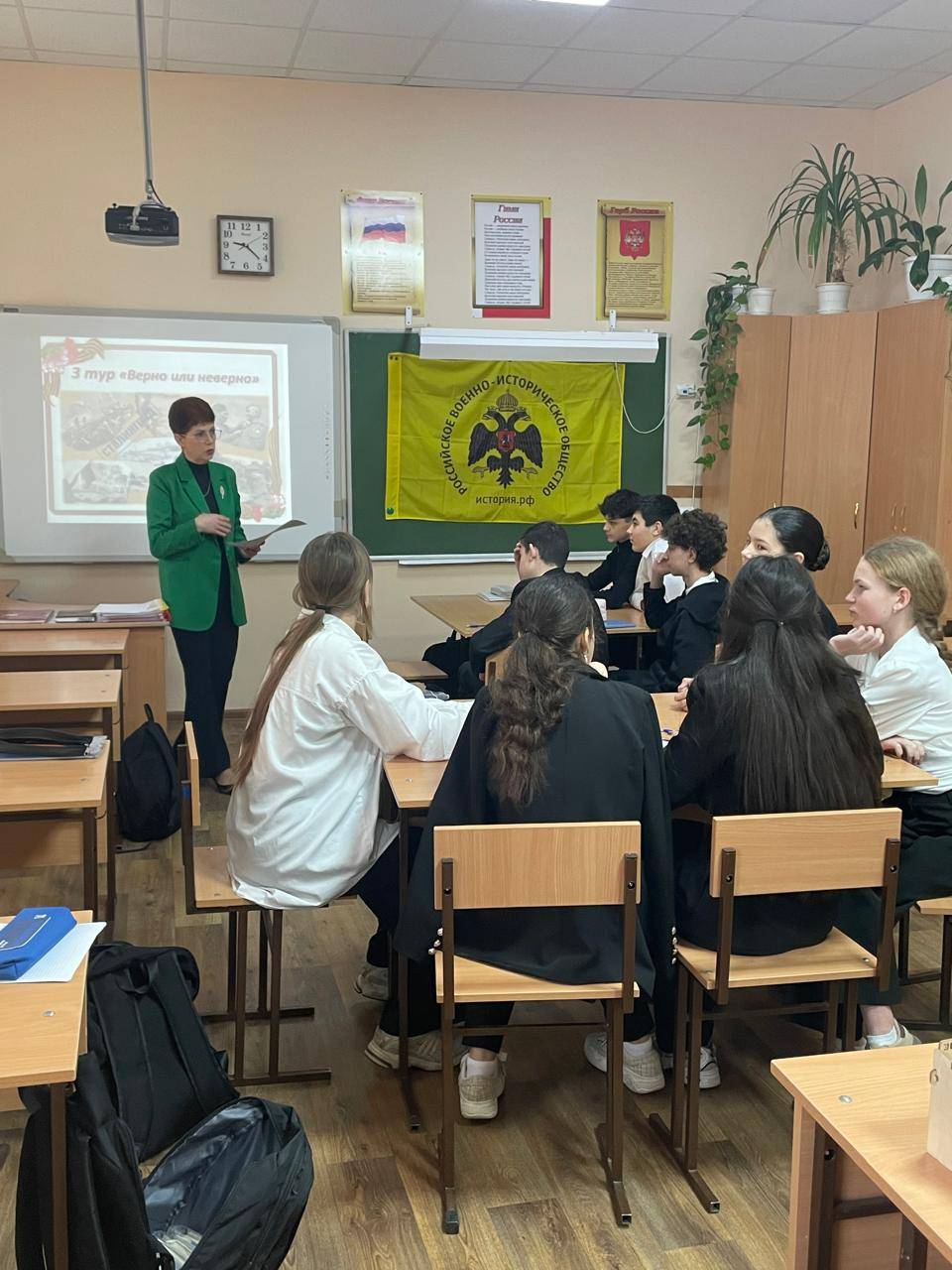 Мероприятие было организовано учителем истории и обществознания Алексиной Е.Ю., председателем Местного отделения РО РВИО СК в Георгиевском муниципальном округе. Ребята показали хорошие знания по теме. Это свидетельствует не только о высоком уровне их подготовки, но и большом интересе к истории своей страны. В результате напряженной борьбы победу одержала команда, в состав которой вошли учащиеся: Бабакова Н., Богославцева Н., Губанова Е., Деканова М. и Пименова А.
