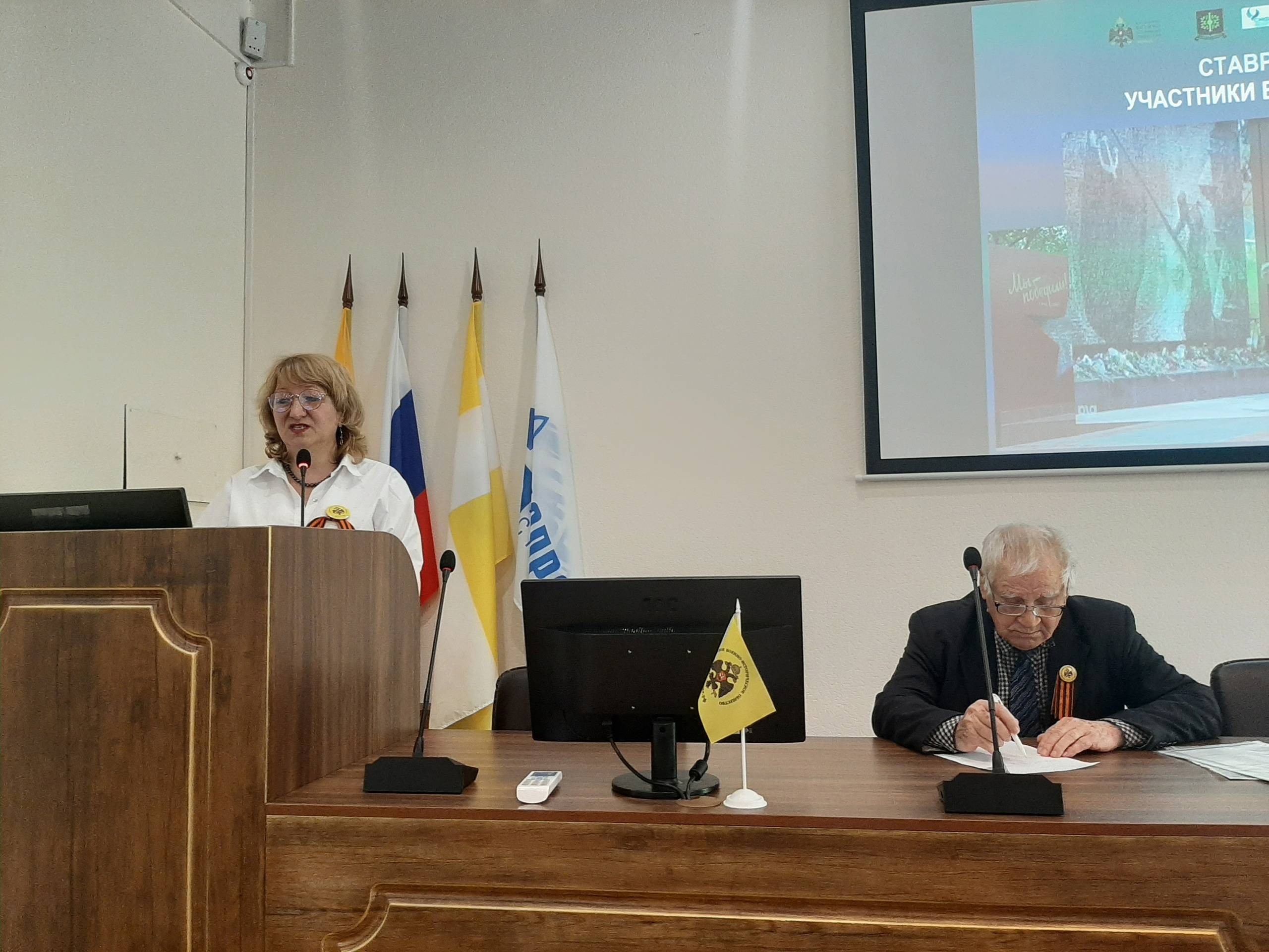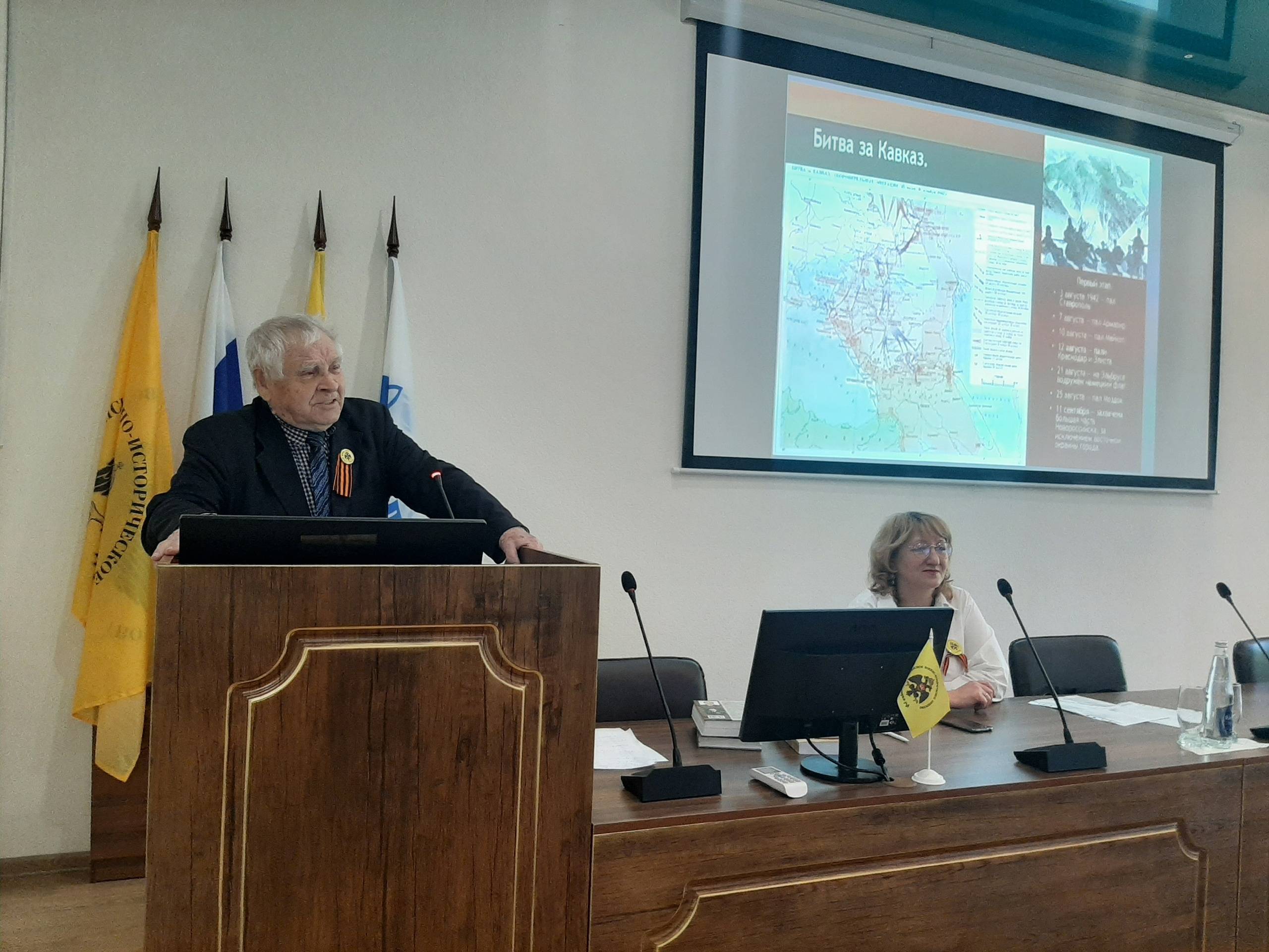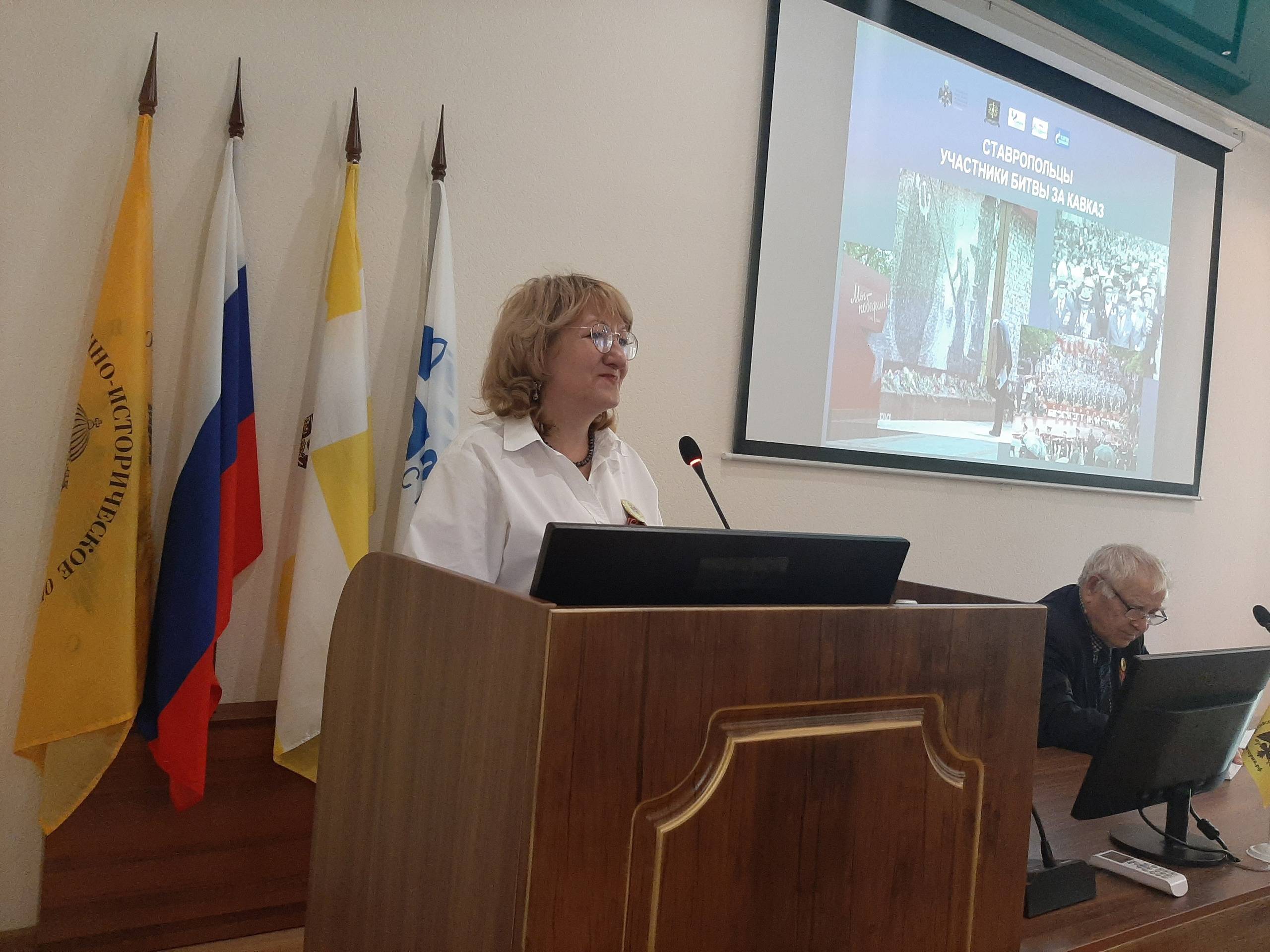 Ведущими лекторами выступили Судавцов Н.Д., д.и.н., Почетный профессор Северо-Кавказского федерального университета (СКФУ), главный научный сотрудник отдела военной истории и патриотической работы СГМЗ, один из учредителей РО РВИО СК, и Стрекалова Е.Н., к.и.н., доцент кафедры истории России СКФУ, старший научный сотрудник отдела военной истории и патриотической работы СГМЗ, член РО РВИО СК.