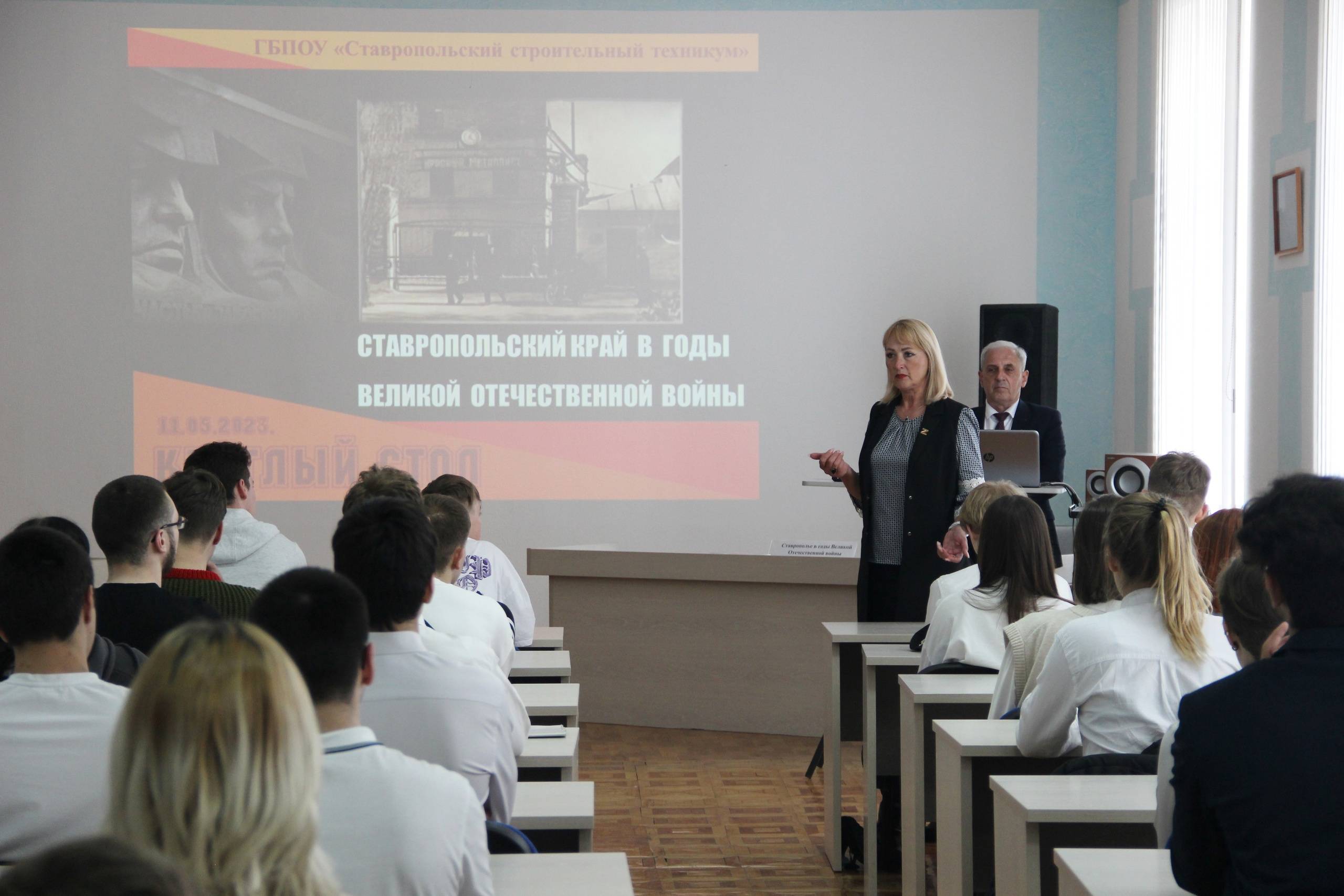 11 мая 2023 года на базе ГБПОУ «Ставропольский строительный техникум» (ССТ) состоялся круглый стол «Молодежь против фальсификации истории. Ставрополье в годы Великой Отечественной войны (1941-1945 гг.), посвященный проблемам фальсификации истории Великой Отечественной войны, вкладу Ставропольского края в Победу над немецко-фашистскими захватчиками.
