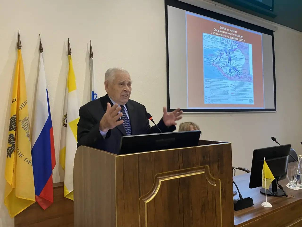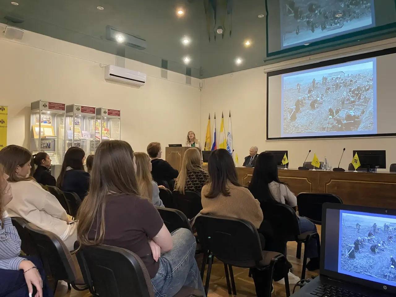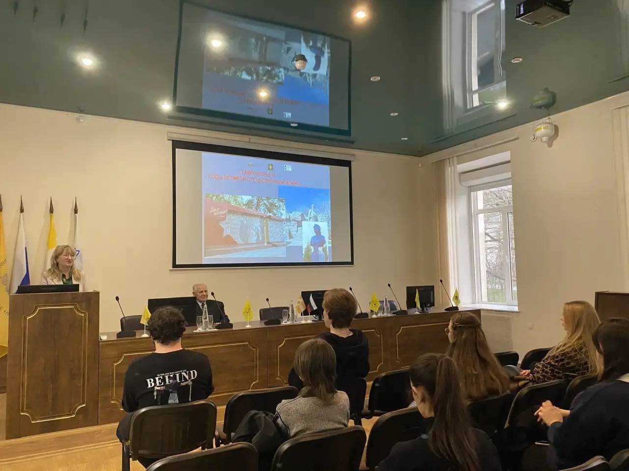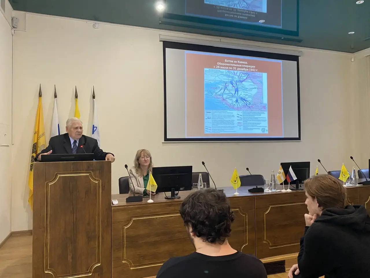 В рамках заседания интерактивной площадки ведущими спикерами выступили Судавцов Н.Д., д.и.н., Почётный профессор СКФУ, главный научный сотрудник отдела военной истории и патриотической работы СГМЗ, член-учредитель РО РВИО СК, и Стрекалова Е.Н., к.и.н., доцент кафедры истории России СКФУ, старший научный сотрудник отдела военной истории и патриотической работы СГМЗ, член РО РВИО СК. В центре обсуждения со студентами оказались различные аспекты истории края в годы войны: ход Битвы за Кавказ, деятельность подпольных отрядов и партизанского движения, зверства фашистов и их пособников, героический вклад уроженцев Ставрополья в общую Победу.