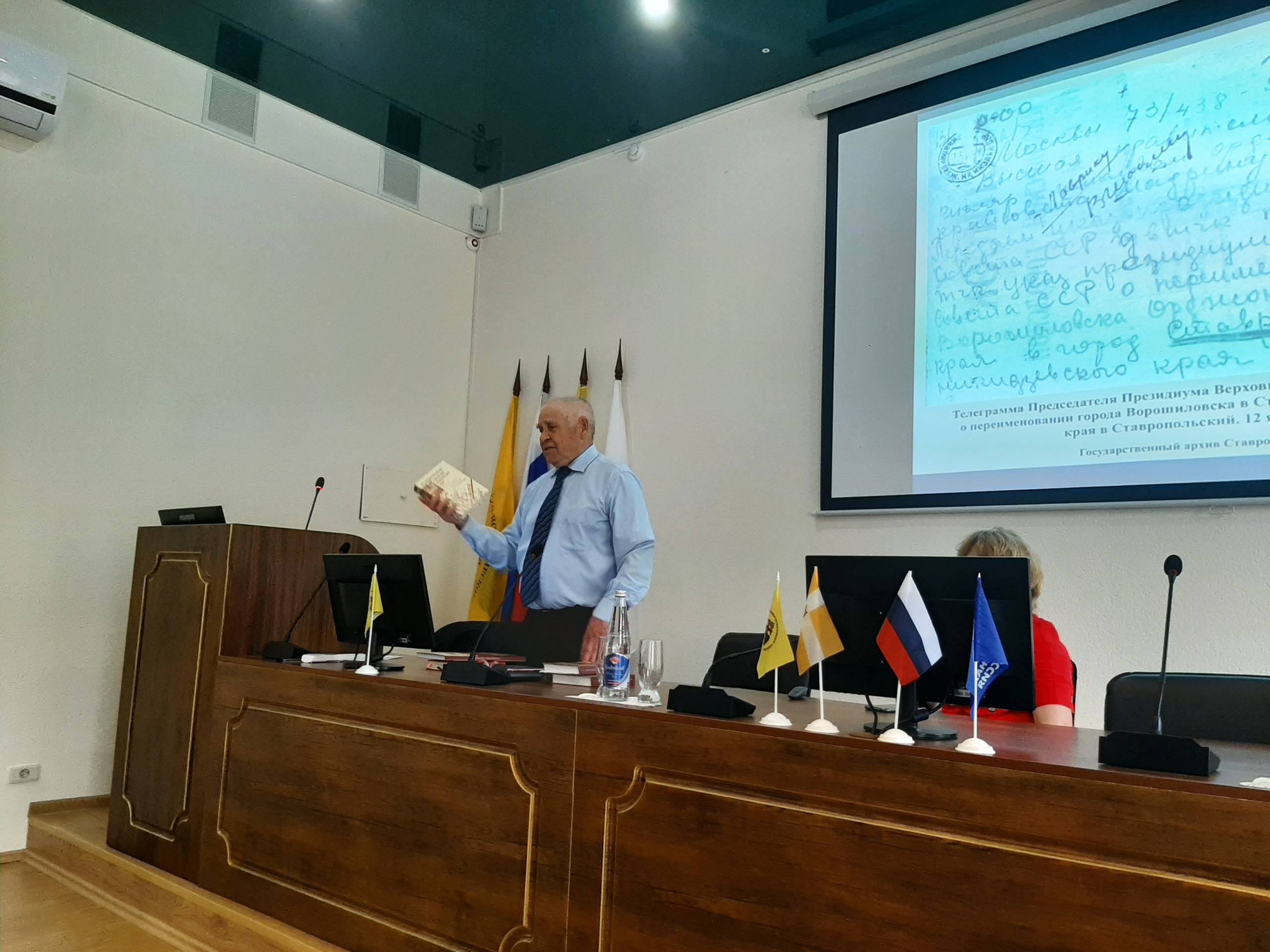 Ведущими лекторами выступили Судавцов Н.Д., д.и.н., Почетный профессор Северо-Кавказского федерального университета (СКФУ), главный научный сотрудник отдела военной истории и патриотической работы СГМЗ, один из учредителей РО РВИО СК, и Стрекалова Е.Н., к.и.н., доцент кафедры истории России СКФУ, старший научный сотрудник отдела военной истории и патриотической работы СГМЗ, член РО РВИО СК.