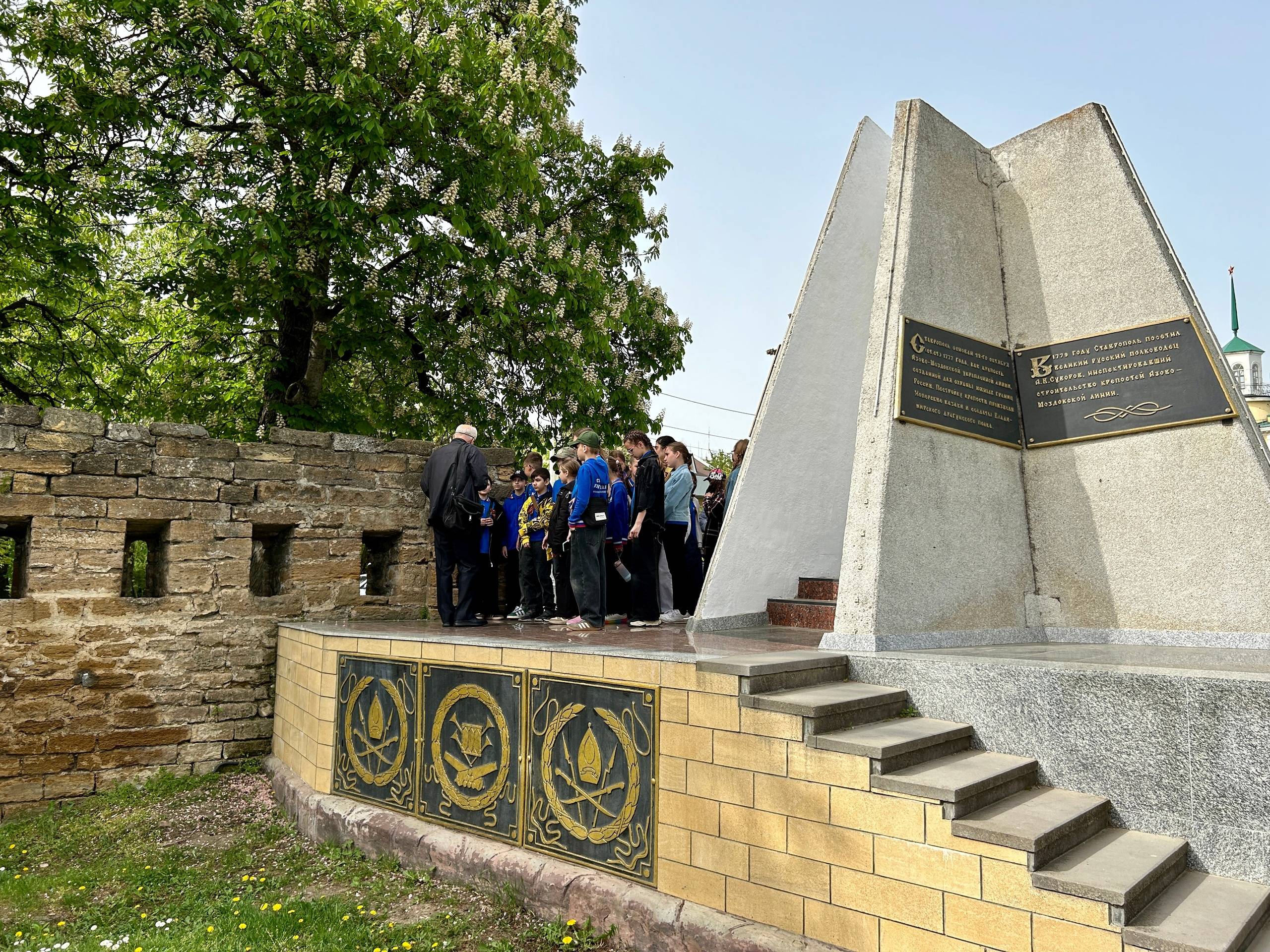 Далее маршрут экскурсии проследовал к Тифлисским воротам или Триумфальной арке г. Ставрополя, откуда ребята и сопровождающие направились к памятнику генерала Ермолова А.П., где Каменева Г.Н. рассказала им о жизни выдающегося военачальника и его вкладе в судьбу региона.