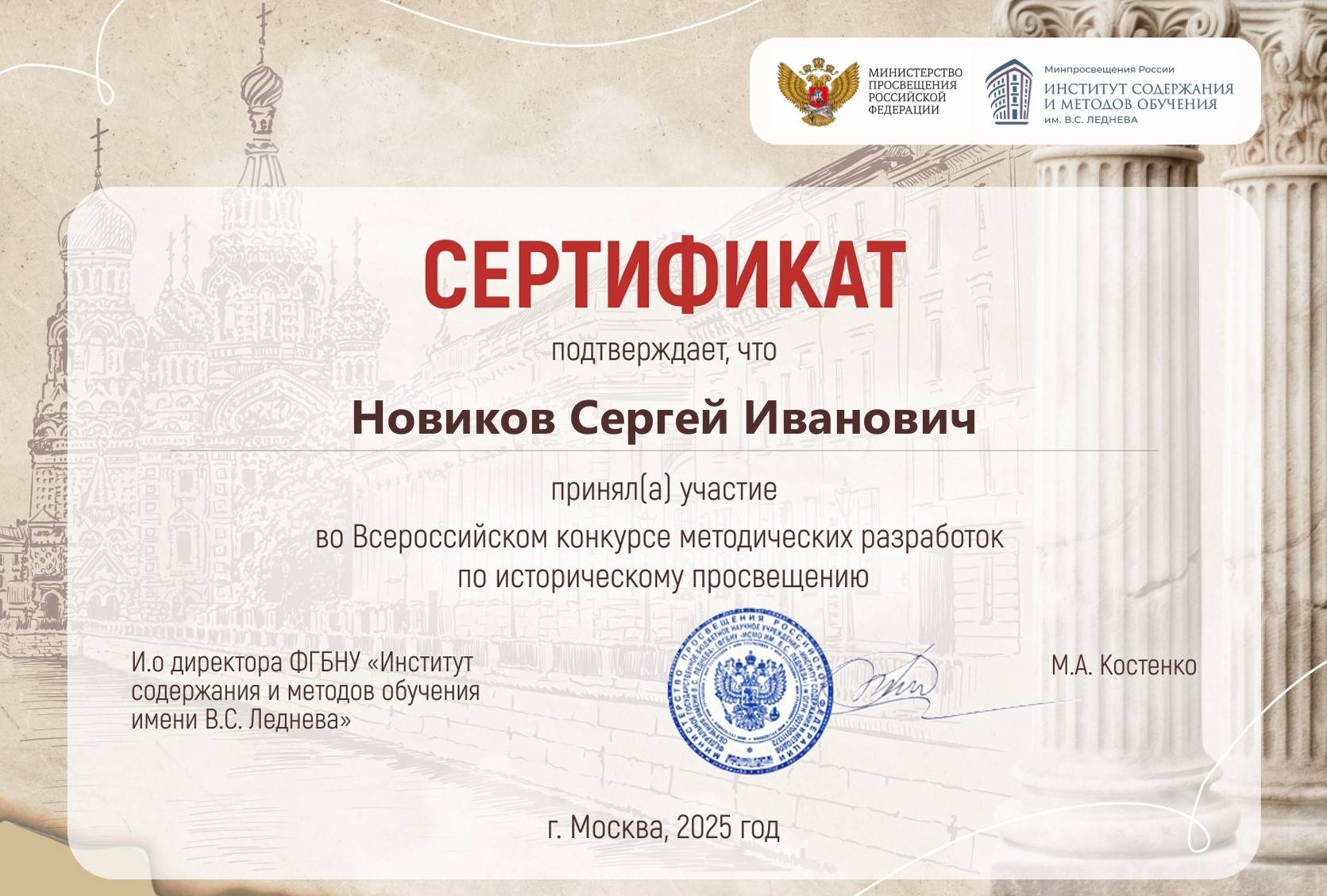 Педагоги также на регулярной основе совершенствуют свои профессиональные навыки в соответствии с тенденциями развития отечественной системы образования. Так, Новиков С.И., преподаватель истории, руководитель краеведческого кружка «Следопыт» Ставропольского строительного техникума, член РО РВИО СК, принял участие во Всероссийском конкурсе методических разработок по историческому просвещению. Конкурс был организован при поддержке РВИО и направлен на поддержку исторического просвещения в образовательных организациях, а также выявление лучших педагогических практик.