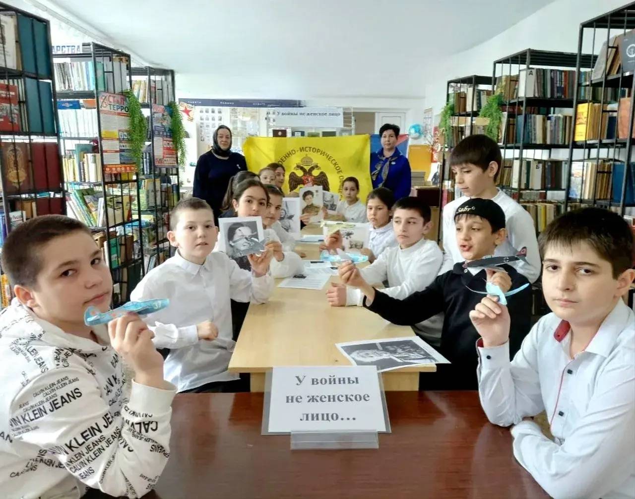 В этот же день в Доме культуры пос. Мирного прошёл Всероссийский урок памяти «У войны не женское лицо». Специалист учреждения, член Местного отделения РО РВИО СК в Курском муниципальном округе (председатель – Жулина Г.В.) Чеченева И.В. рассказала школьникам о героических лётчицах. Ребята не только услышали интересные факты из биографий прославленных женщин, но и смогли погрузиться в детали военной истории. Для наглядности были использованы модели самолётов, с помощью которых юным слушателям объяснили тактику ведения воздушного боя.