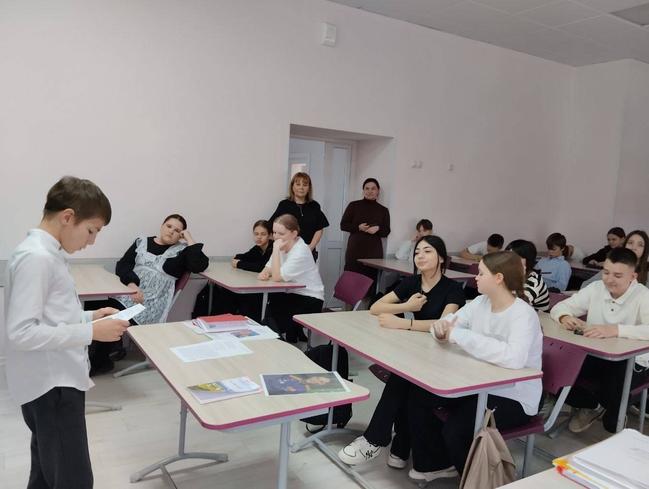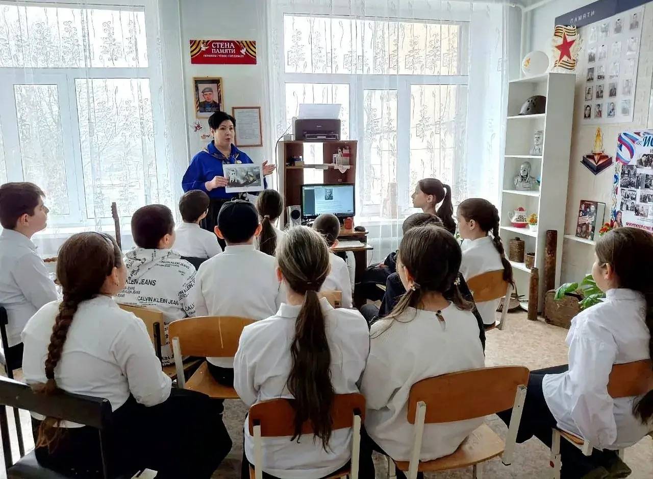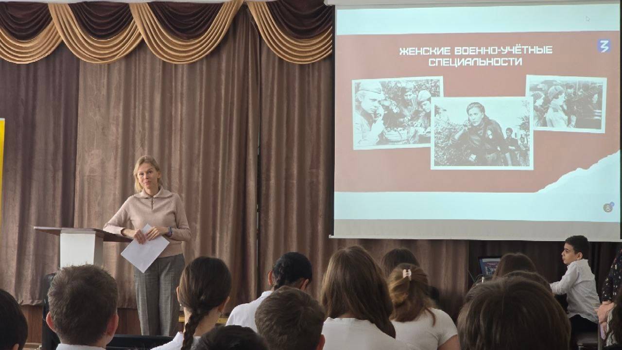 4 марта 2026 г. в МБОУ гимназии №2 г. Георгиевска для учеников шестых классов состоялась мастер-лекция «Женщины на войне и в тылу». Её провела советник директора по воспитанию, член Местного отделения РО РВИО СК в Георгиевском муниципальном округе (председатель – Алексина Е.Ю.) А.И. Семеновская. Вместе с педагогом ребята перелистали героические страницы истории. Разговор шёл о легендарных лётчицах, которых враг прозвал «ночными ведьмами», о снайперах и разведчицах, о тех, кто обеспечивал связь и прикрывал небо. Главной мыслью мероприятия стала идея преемственности поколений. Школьникам рассказали о женщинах-медиках, спасающих сегодня жизни в зоне Специальной военной операции, о волонтёрах и труженицах тыла, которые поддерживают бойцов.