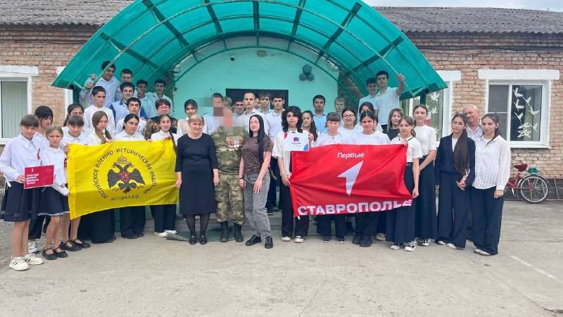 На этой неделе для учащихся МКОУ СОШ №3 с. Каново по инициативе Абакаевой Д.С., члена Местного отделения РО РВИО СК в Курском муниципальном округе (председатель – Жулина Г.В.), была организована встреча с участником специальной военной операции. Сурмач А.С., выпускник Кановской школы 2007 г., стал гостем своего родного учебного заведения. Встреча прошла тепло и душевно, дети смогли открыто спросить обо всём, что их интересовало: о боевом пути земляка, о внутренних побуждениях встать на защиту Родины и мужестве перед лицом опасности. Александр ответил на все вопросы ребят, рассказал про сложности военных будней и радость от возвращения домой живым и невредимым. В завершение мероприятия, собравшиеся почтили память павших защитников Отечества минутой молчания.