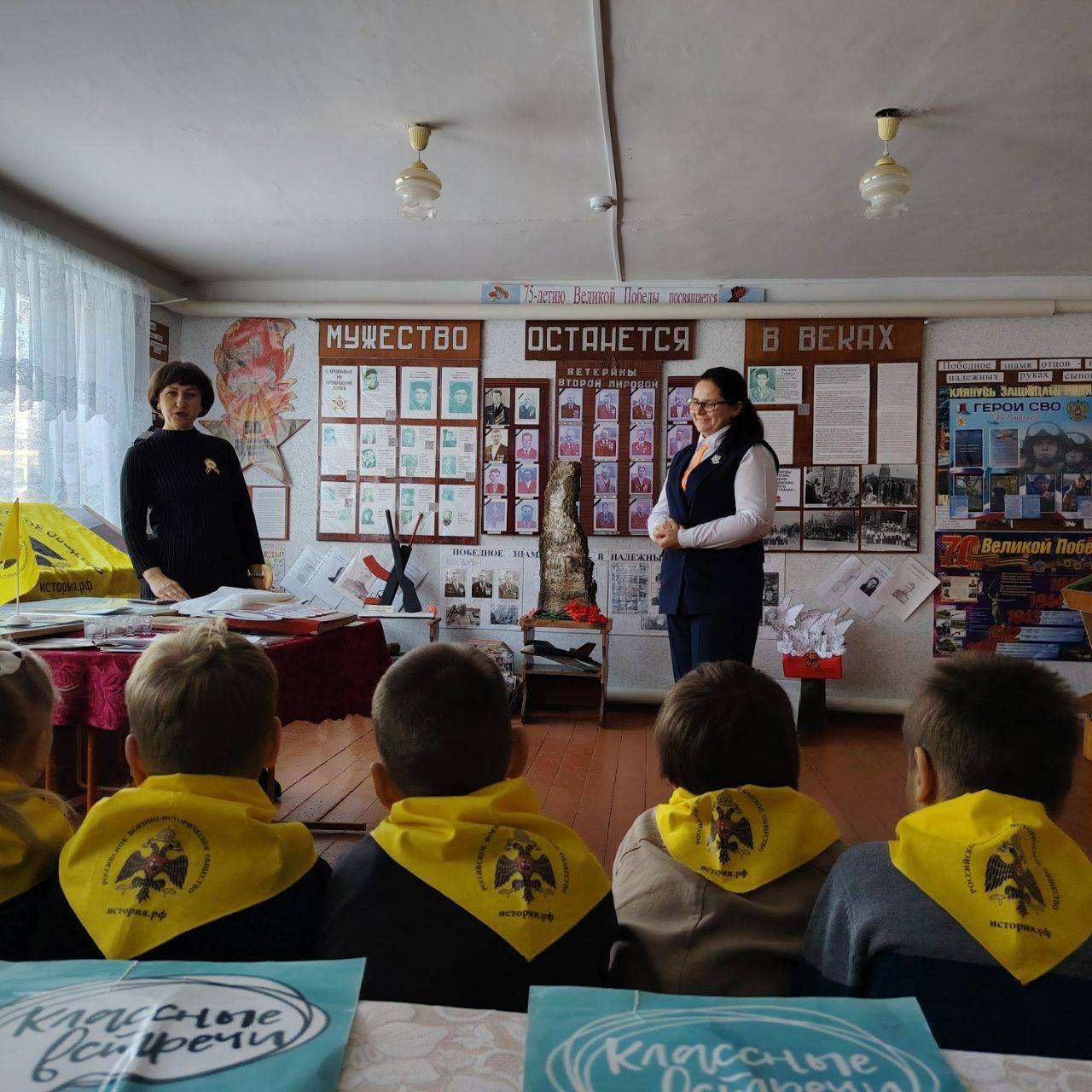 26 декабря 2025 г. в МКОУ СОШ №9 с. Родниковского Арзгирского округа для активистов РДДМ «Движение первых» состоялась познавательная встреча с Н.Н. Новак – председателем Местного отделения РО РВИО СК в с. Родниковском, руководителем Музея истории села, а в прошлом – выпускницей этой же школы. Мероприятие, инициированное советником директора по воспитанию, членом РО РВИО СК Л.В. Полозовой, прошло в стенах школьного музея. Это место выбрано не случайно: более 35 лет назад Наталья Николаевна вместе с другими школьниками принимала участие в создании этого музея, будучи членом поискового отряда. В ходе беседы дети узнали, как зарождалась история их школьного музея, который для многих поколений стал сердцем образовательного учреждения и местом, где начинается любовь к малой Родине. Ребята также узнали о деятельности Ставропольского регионального отделения РВИО и его Родниковского Местного отделения.