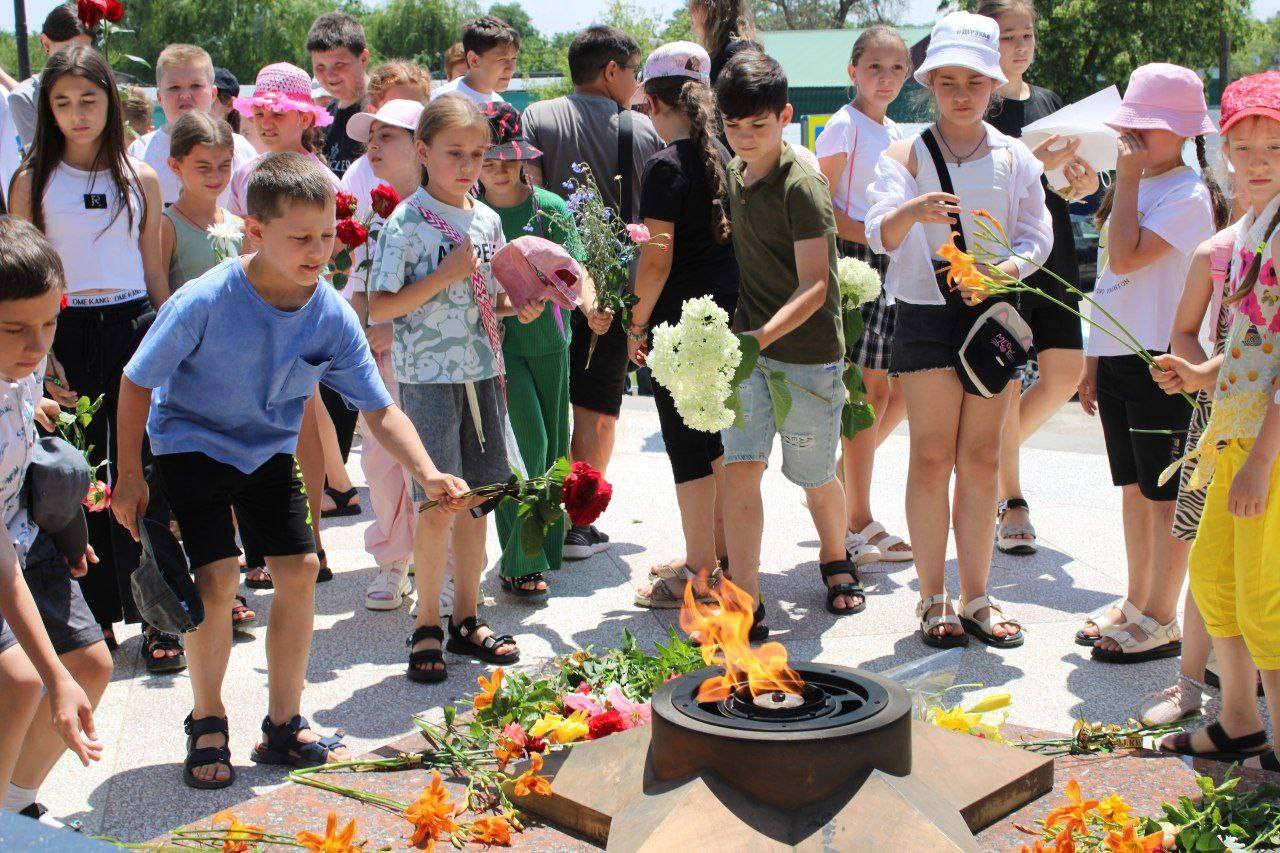 В Новоалександровском районном музее прошёл цикл мероприятий, посвящённых Дню памяти и скорби. Одно из них – урок памяти «Тот самый первый день войны», который состоялся 20 июня 2025 г. Его участниками стали юнармейцы МОУ СОШ №5 г. Новоалександровска, воспитанники пришкольного лагеря. Научный сотрудник музея Герасимова М.Ф., член РО РВИО СК, рассказала ребятам о событиях 22 июня 1941 г. на границе СССР и о том, как и когда известие о начавшейся войне встретили в Новоалександровском районе. Ребята познакомились с тематической выставкой «Бессмертный гарнизон», фотографиями и документами своих земляков-защитников Брестской крепости, узнали о тех из них, кто прошёл всю войну – от Бреста до Берлина, и о тех, кто погиб в первые дни и недели войны.