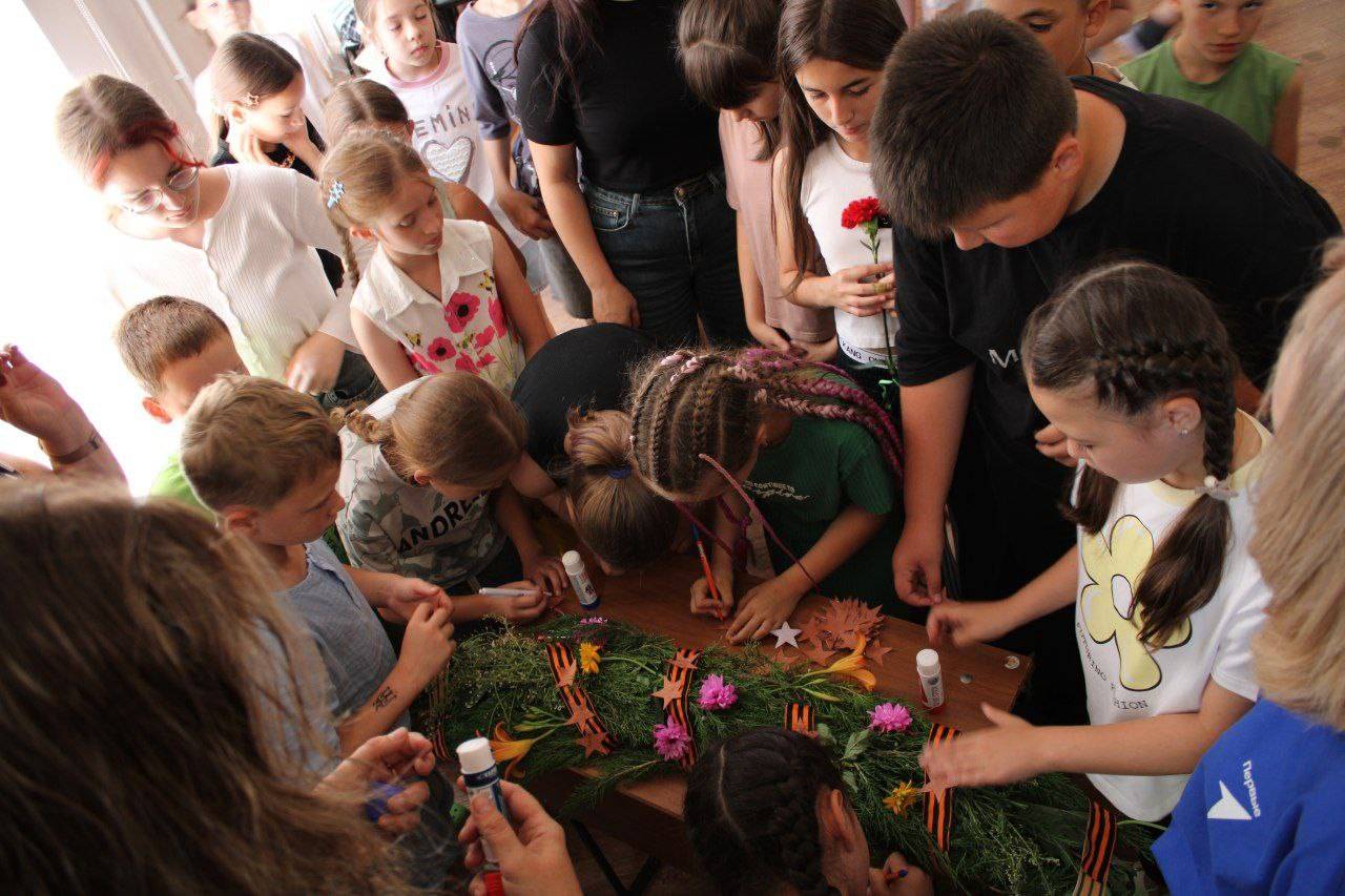 20 июня 2025 г. в Курском округе прошёл литературный библиомарафон «Марш-бросок по Курскому району», в рамках которого в Центре дополнительного образования детей состоялась творческая встреча «Тот самый первый день войны». Ведущий библиограф центральной районной библиотеки Шалько Т.С., член Местного отделения РО РВИО СК в Курском муниципальном округе (председатель – Жулина Г.В.), рассказала ребятам о первых, самых страшных часах начала войны, о том, как люди встретили эту весть, о первых подвигах и о той боли, которую принесла война в каждый дом. Особую атмосферу создали стихи о Великой Отечественной войне, прозвучавшие из уст поэтов районного литературного объединения «Родник» имени В.Н. Пустовой – Шуст В.В. и Жулина Н.П. Вместе с поэтами ребята исполнили песни, написанные в годы войны и после нее. Кульминацией мероприятия стала создание «Венка памяти»: на него ребята прикрепили звезды, на которых написали имена своих родных и близких, воинов, участников Великой Отечественной войны. Завершилась встреча возложением цветов к мемориалу.
