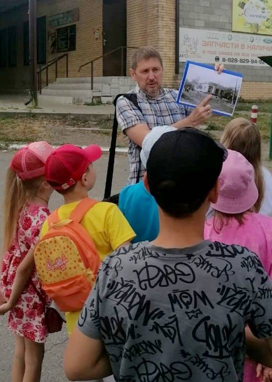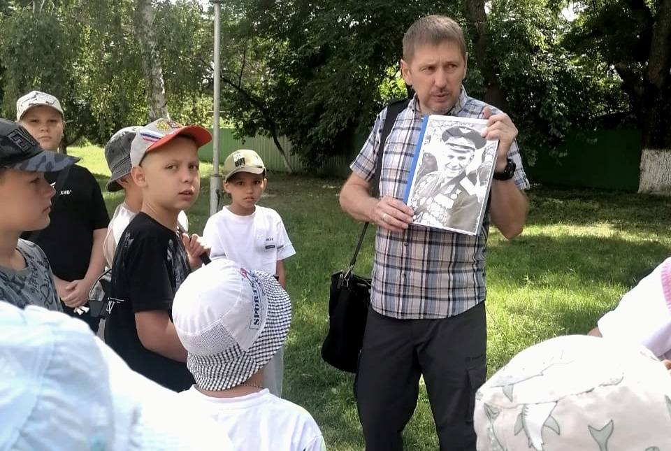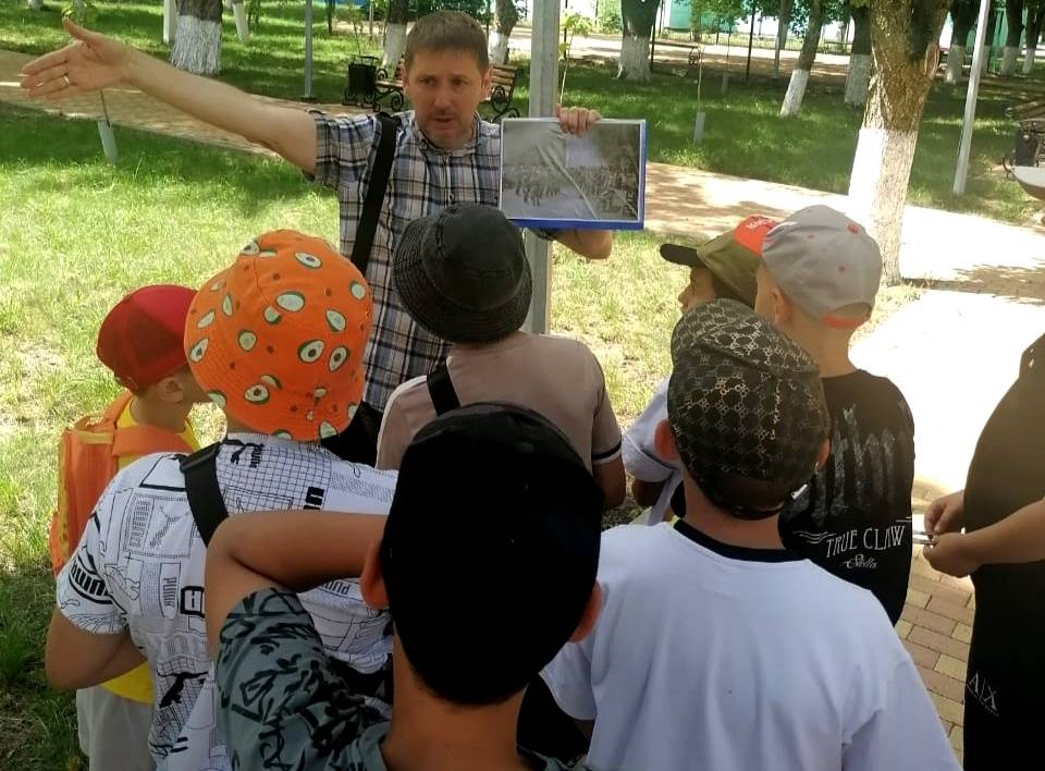3 июля 2025 года председатель Местного отделения Ставропольского регионального отделения Российского военно-исторического общества (РО РВИО СК) в Кочубеевском муниципальном округе Котов Сергей Николаевич, учитель истории и краеведения, руководитель Центра музейной педагогики МБОУ СОШ №16 с. Казьминского (директор – Спиридов А.В., член РО РВИО СК) провел для воспитанников пришкольного лагеря «Истоки» военно-историческую экскурсию.