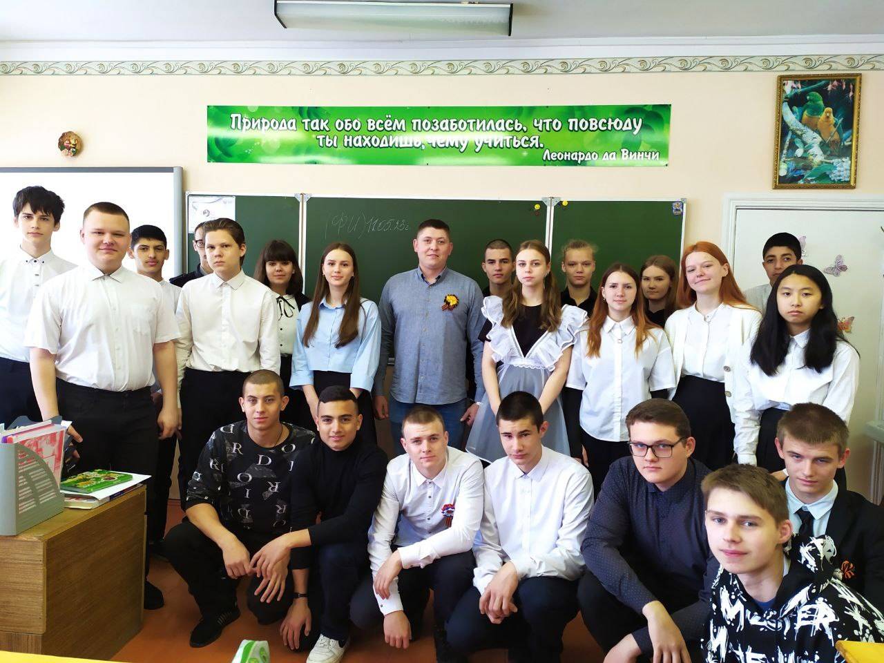 11 мая 2023 года члены Местного отделения РО РВИО СК в Изобильненском городском округе (председатель – Н.И. Щендригин) на базе историко-краеведческого музея «Истоки» №7315 имени полного кавалера орденов Славы М.Ф. Гусева (руководитель член РО РВИО СК – Т.Н. Мирошниченко) МБОУ СОШ №8 им. А.В. Грязнова с. Тищенского Изобильненского городского округа (директор член РО РВИО СК – С.С. Князева) организовали встречу с уроженецем села, выпускником школы, участником СВО. О своем госте сотрудники музея отзываются, как об артистичном, обаятельном мужчине, который мог бы стать артистом, в школьные годы ни одно мероприятие не обходилось без его участия, любая роль ему была по плечу, но после окончания школы он выбрал военное училище. Классный руководитель военнослужащего вспоминает, что однажды, провожая его в военное училище после непродолжительных каникул, спросила его: "Что, если война?". На что он без колебания ответил: "Если вдруг придётся встать на защиту Отечества, то я буду во всеоружии: обучен всем премудростям военного искусства". Результатом такой решимости, отваги, самоотверженности и личного мужества, проявленных в боевых действиях при защите Отечества и государственных интересов Российской Федерации стала медаль Жукова.