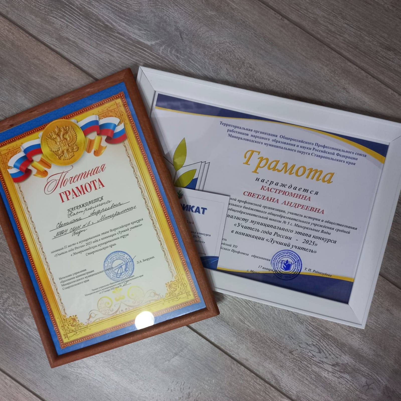 Испытания для педагогов включали в себя несколько этапов: «Видеоэссе участника конкурса», «Педагогическое интервью», «Урок», «Мастер-класс», «Блиц-турнир» и «Брифинг». В числе участников была Кастрюмина С.А., учитель истории и обществознания МБОУ СОШ № 5 г. Минеральные Воды, преподаватель ЧПОУ СЭК «Перспектива», член Ставропольского регионального отделения Российского военно-исторического общества (РО РВИО СК). Она достойно проявила себя, продемонстрировав высокий уровень педагогического мастерства и творческий подход к обучению, что позволило ей занять почетное 2 место в номинации «Лучший учитель».