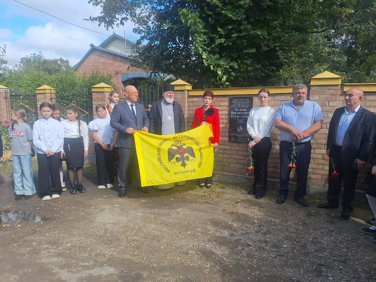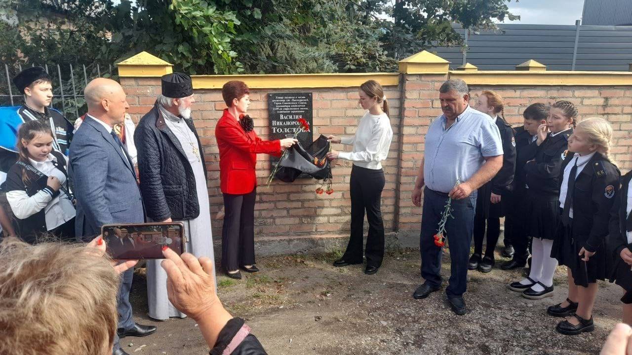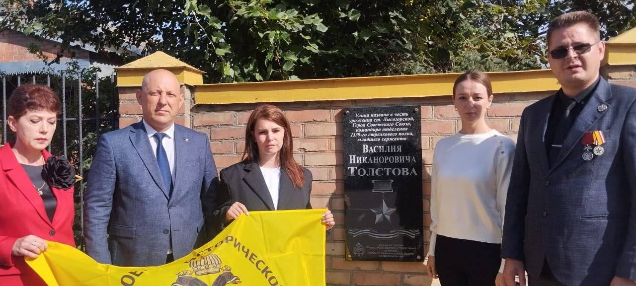 В прошедшие выходные в ст. Лысогорской Георгиевского муниципального округа состоялось торжественное открытие мемориальных досок в честь уроженцев станицы, Героев Советского Союза В.Н. Толстова и В.Н. Шошина. Именами прославленных земляков названы улицы на их малой Родине.
