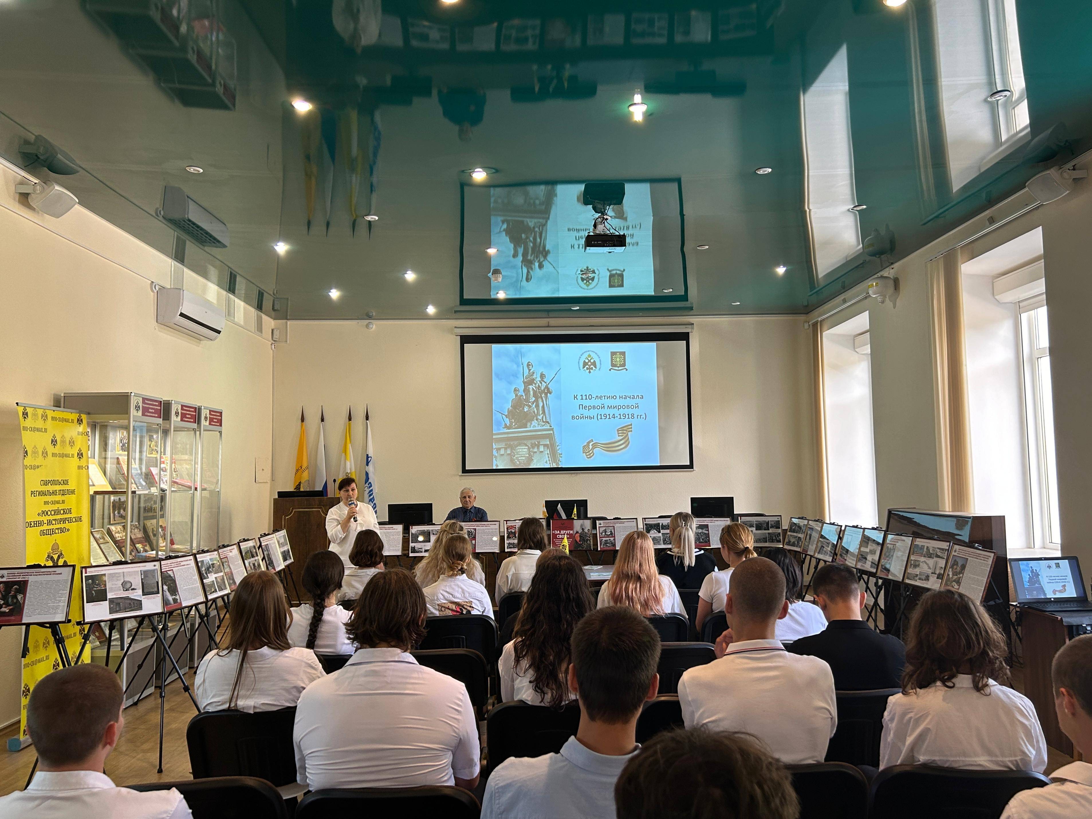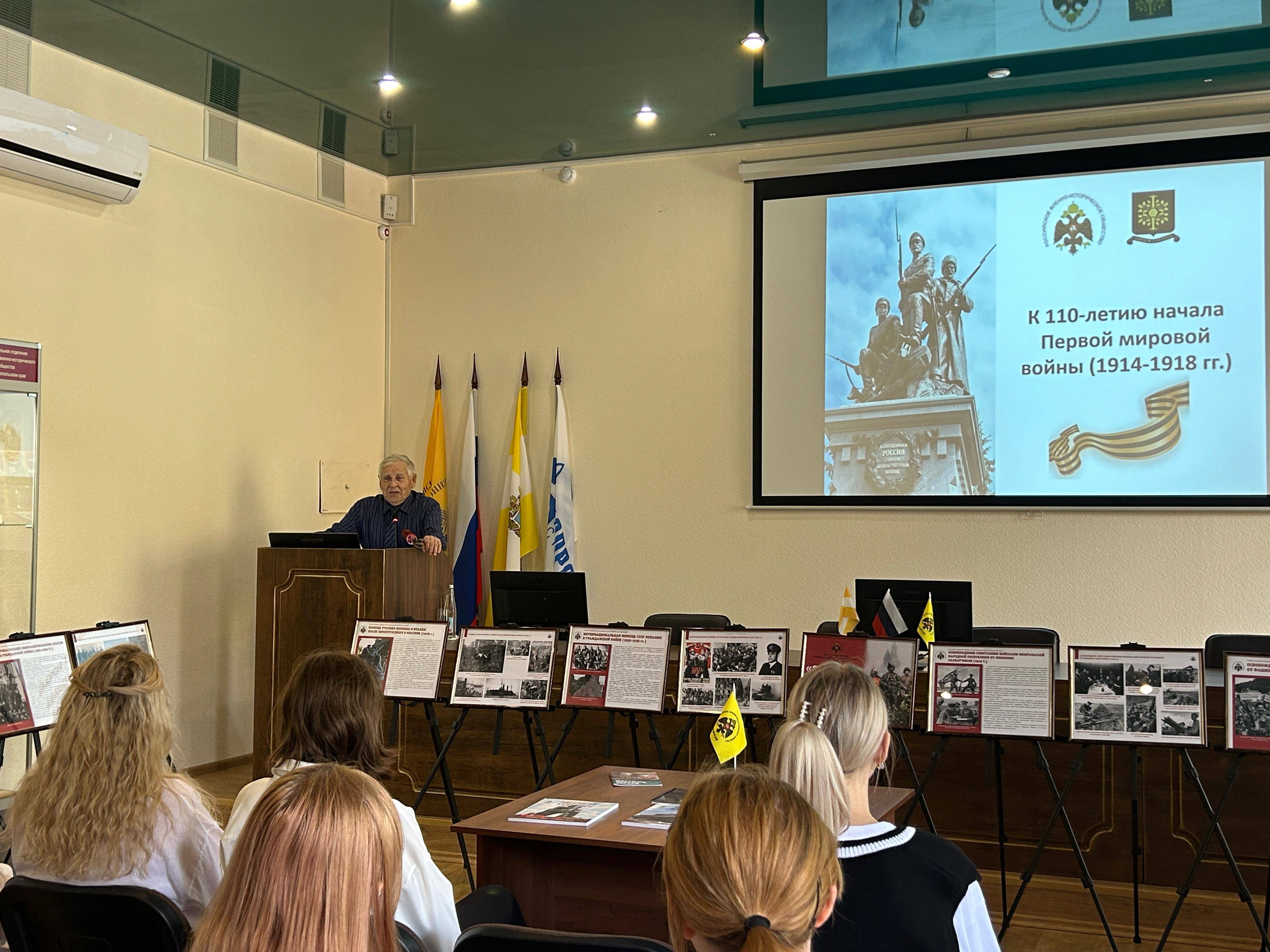 В 2024 г. исполнилось 110 лет со дня начала Первой мировой войны (28 июля 1914 г.). В связи с этим начало нового учебного года ознаменовалось проведением 05 сентября 2024 г. на базе конференц-зала Ставропольского регионального отделения Российского военно-исторического общества (РО РВИО СК) публичной лекции, посвящённой этому событию.
