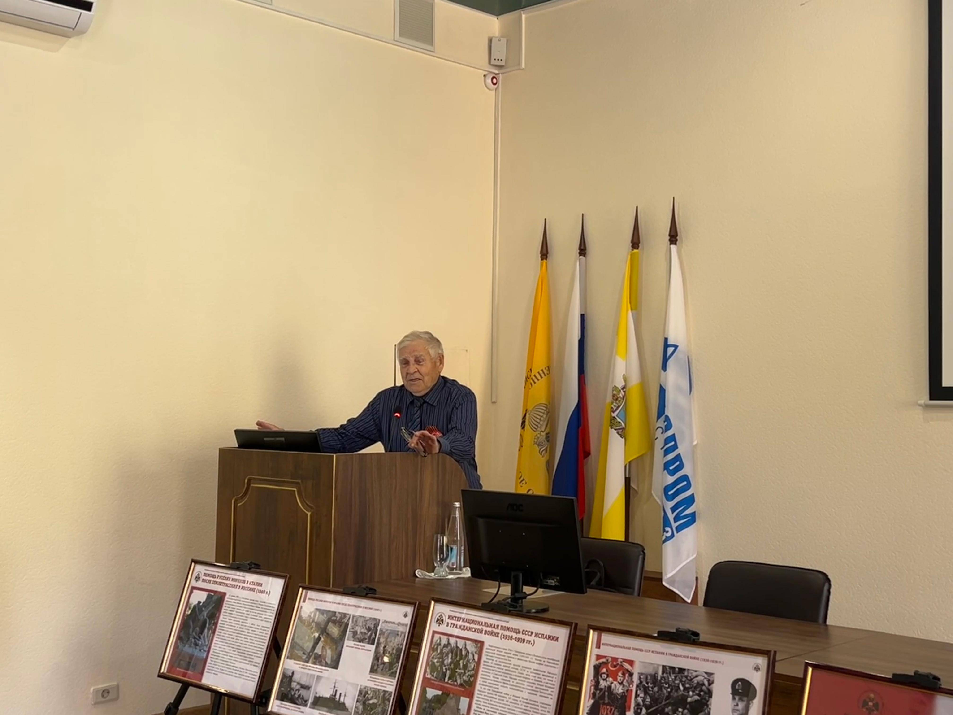 Ведущим докладчиком на мероприятии выступил Судавцов Н.Д., д.и.н., Почетный профессор Северо-Кавказского федерального университета (СКФУ), главный научный сотрудник отдела военной истории и патриотической работы Ставропольского государственного музея-заповедника (СГМЗ), один из учредителей РО РВИО СК. Слушателями лекции стали учащиеся школ г. Ставрополя – представители РДДМ «Движение первых» Ставропольского края (председатель – Головин Г.П., член РО РВИО СК).