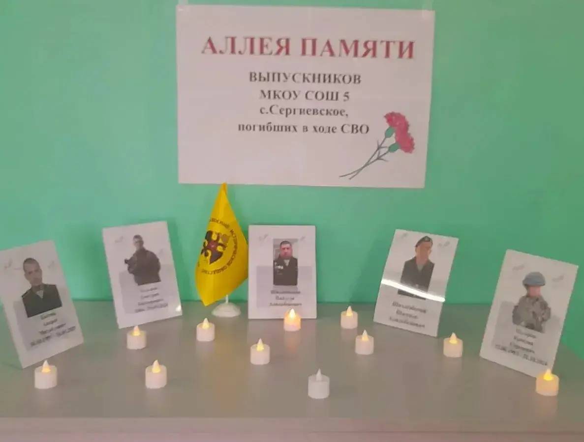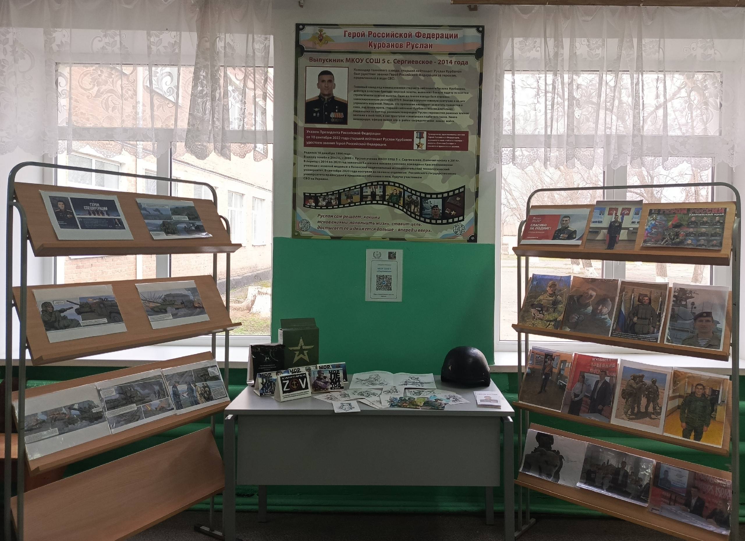 В преддверии Дня Героев Отечества в МКОУ СОШ №5 с. Сергиевского (директор – Гоноченко О.А., член Местного отделения РО РВИО СК в Грачёвском муниципальном округе (председатель – Степаненко Н.И.)) была подготовлена выставка, посвящённая выпускнику школы, Герою России Р.М. Курбанову. Экспозиция подробно рассказала о его становлении как военного и боевом пути. Кроме того, учащиеся создали импровизированную «Аллею Славы» в память о выпускниках, погибших при исполнении воинского долга в ходе Специальной военной операции.