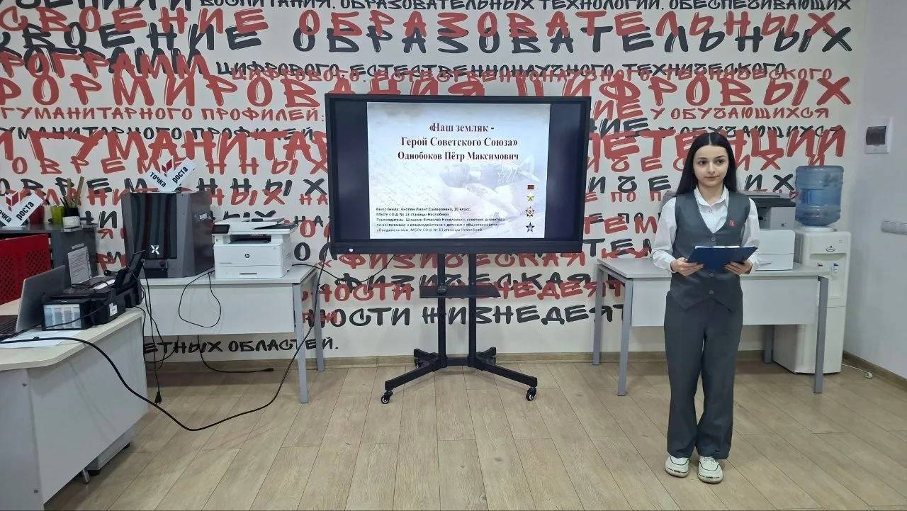 9 декабря 2025 г. обучающаяся 10 класса МБОУ СОШ № 13 ст. Незлобной Акопян Лилит провела классный час в 4 классе, где она является наставником. Мероприятие было посвящено земляку, Герою Советского Союза П.М. Однобокову. Методическая разработка материала для мероприятия была осуществлена учителем истории Шишкиным В.Н., членом Местного отделения РО РВИО СК в Георгиевском муниципальном округе (председатель – Алексина Е.Ю.). Ребята познакомились с биографией Героя, историей его боевого пути и наградами. Особый интерес у ребят вызвала информация о том, что Пётр Максимович проживал в г. Георгиевске, работал военруком в СОШ №3, был одним из создателей «Вахты памяти» у Вечного огня. В честь Героя была названа улица в Георгиевске, его имя носит СОШ №3, на главном входе которой размещена мемориальная доска, а в 2025 г. в Головинском сквере был установлен памятник выдающемуся земляку.