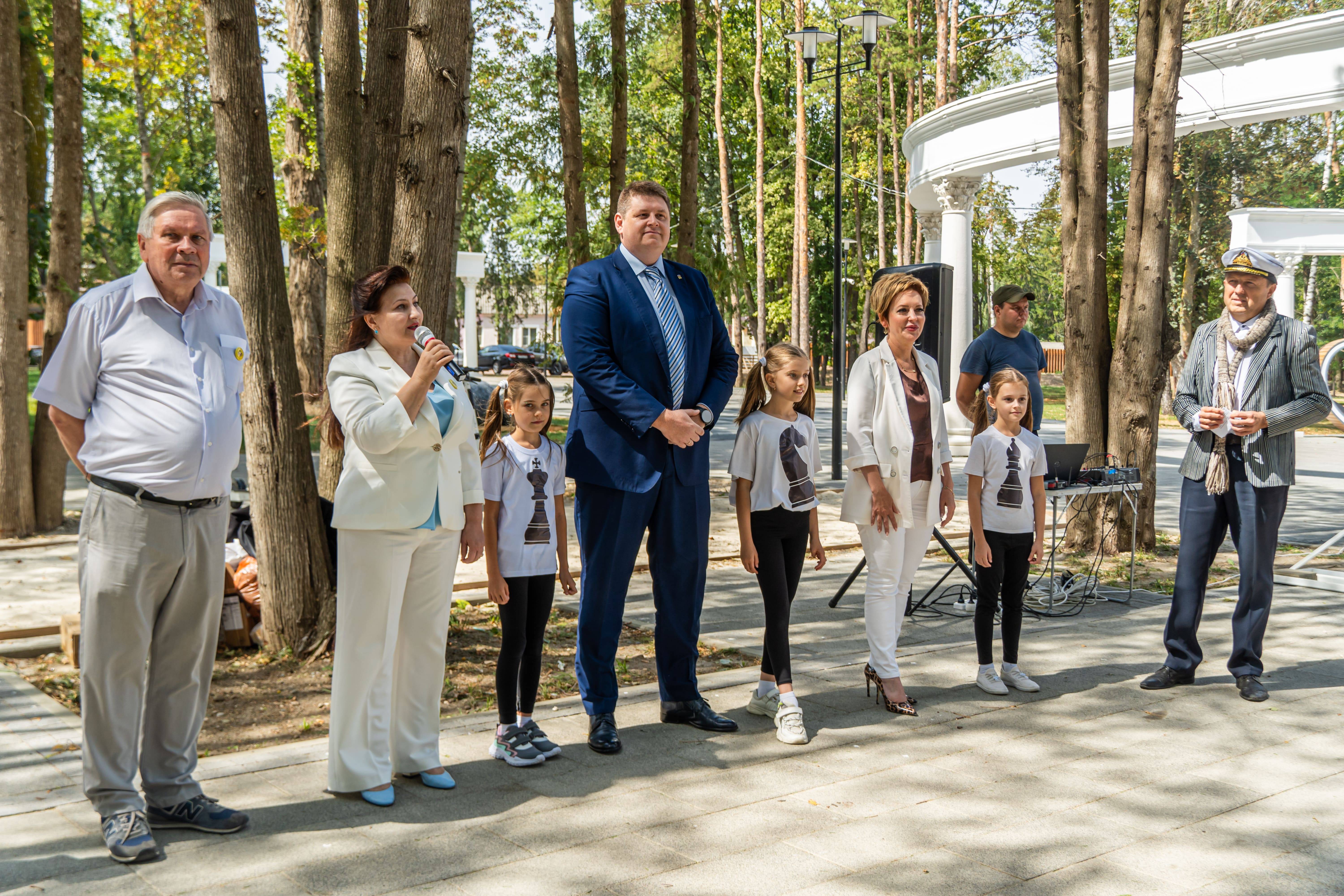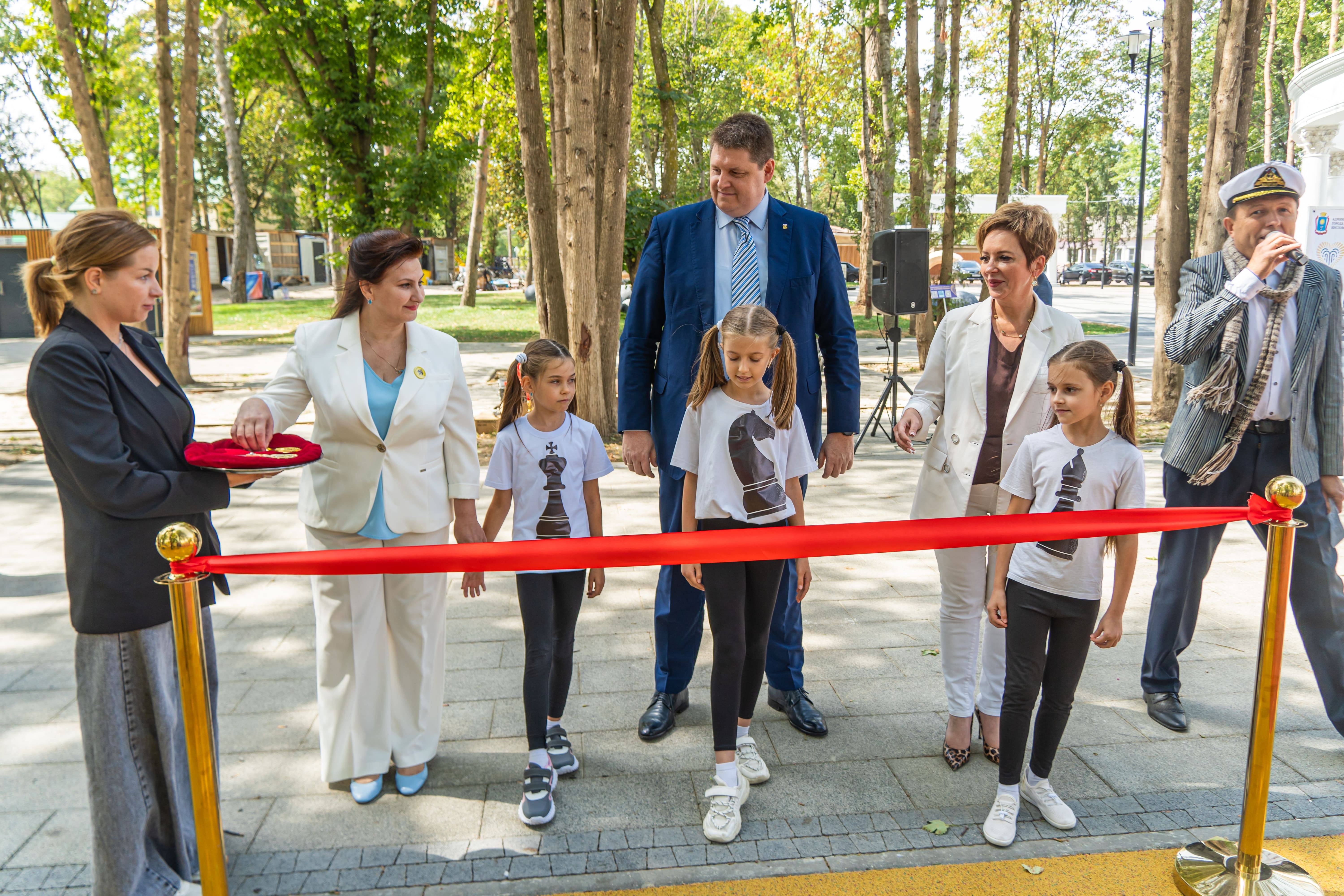 Ведущий мероприятия был воплощён во всем известный литературный персонаж «великого комбинатора» Остапа Бендера, юные акробаты выписывали трюки, звучала музыка, гости желали, чтобы шахматный дворик всегда был наполнен людьми, состоялось традиционное разрезание ленточки, сеанс одновременный игры председателя Городской шахматной Федерации Восканяна А.Ф. и юных шахматистов.