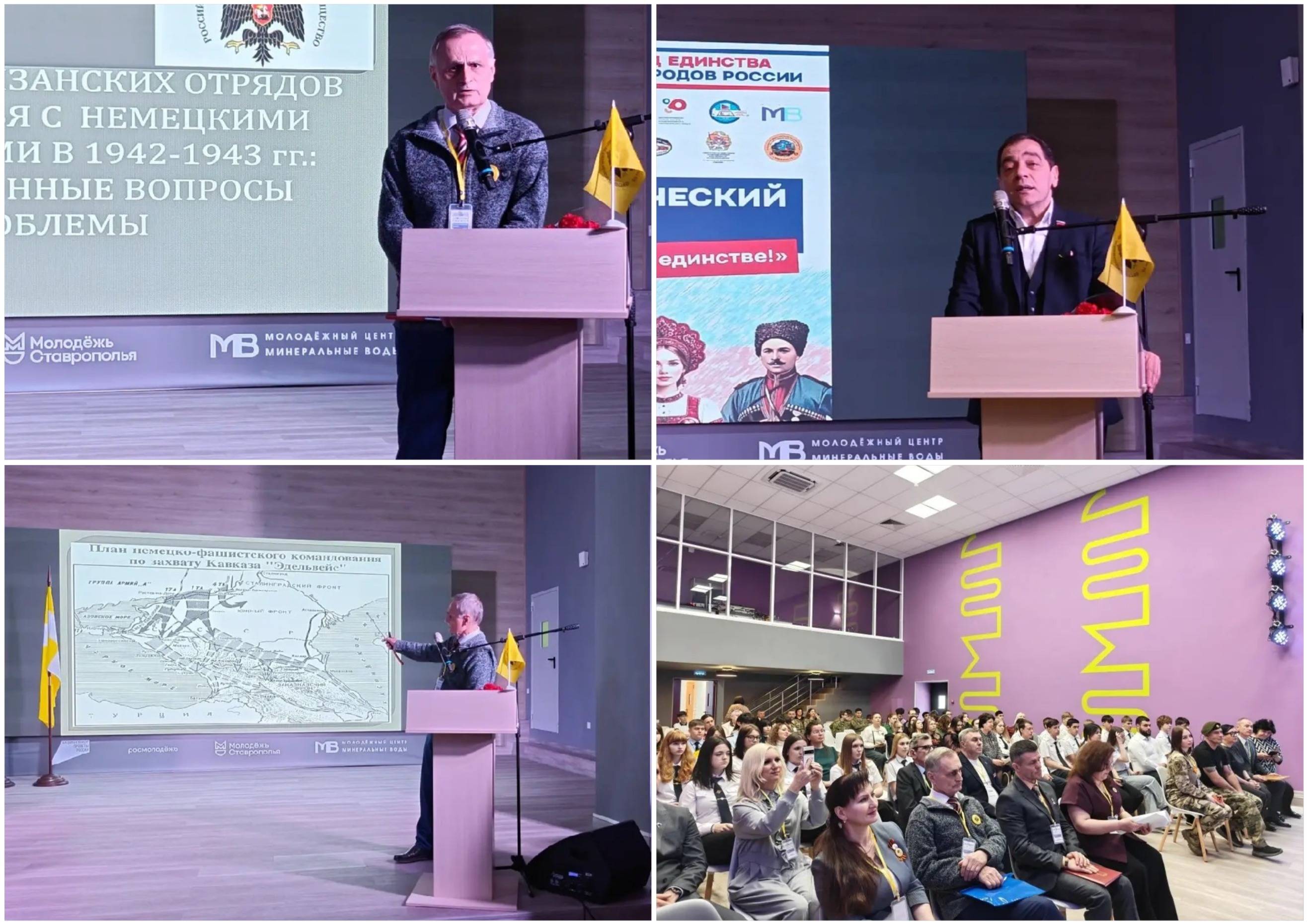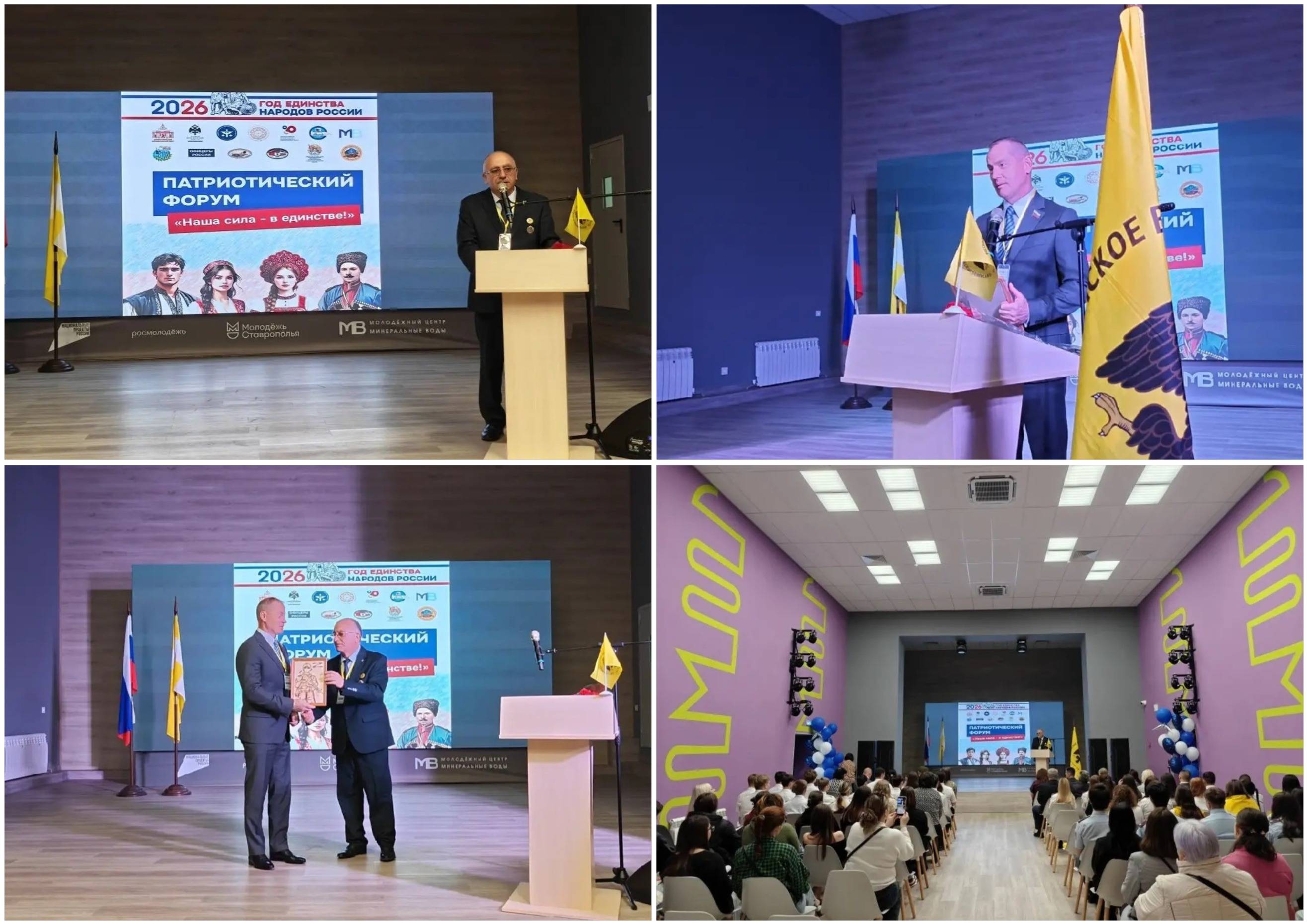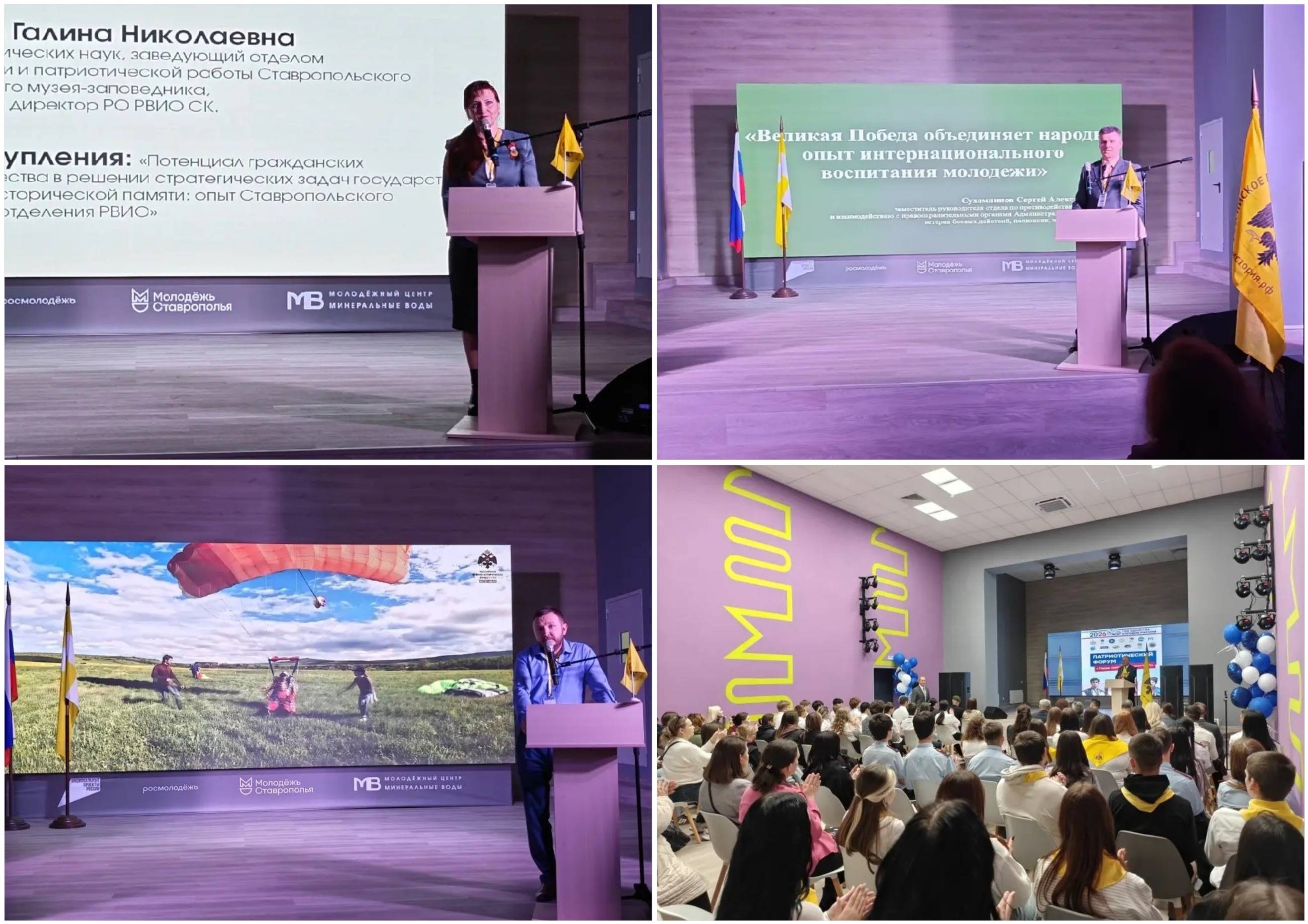 10 апреля 2026 г. в г. Минеральные Воды состоялся Патриотический форум «Наша сила в единстве». Мероприятие прошло на базе Молодёжного центра Минераловодского муниципального округа, а его организаторами выступили Администрация Минераловодского муниципального округа, Ставропольское региональное отделение Российского военно-исторического общества (РО РВИО СК) (председатель – Шевелёв С.А.), отдел военной истории и патриотической работы Ставропольского государственного музея-заповедника (СГМЗ) (зав. отделом – Каменева Г.Н.) и Местное отделение РО РВИО СК в Минераловодском муниципальном округе (председатель – Акопян М.Б.).