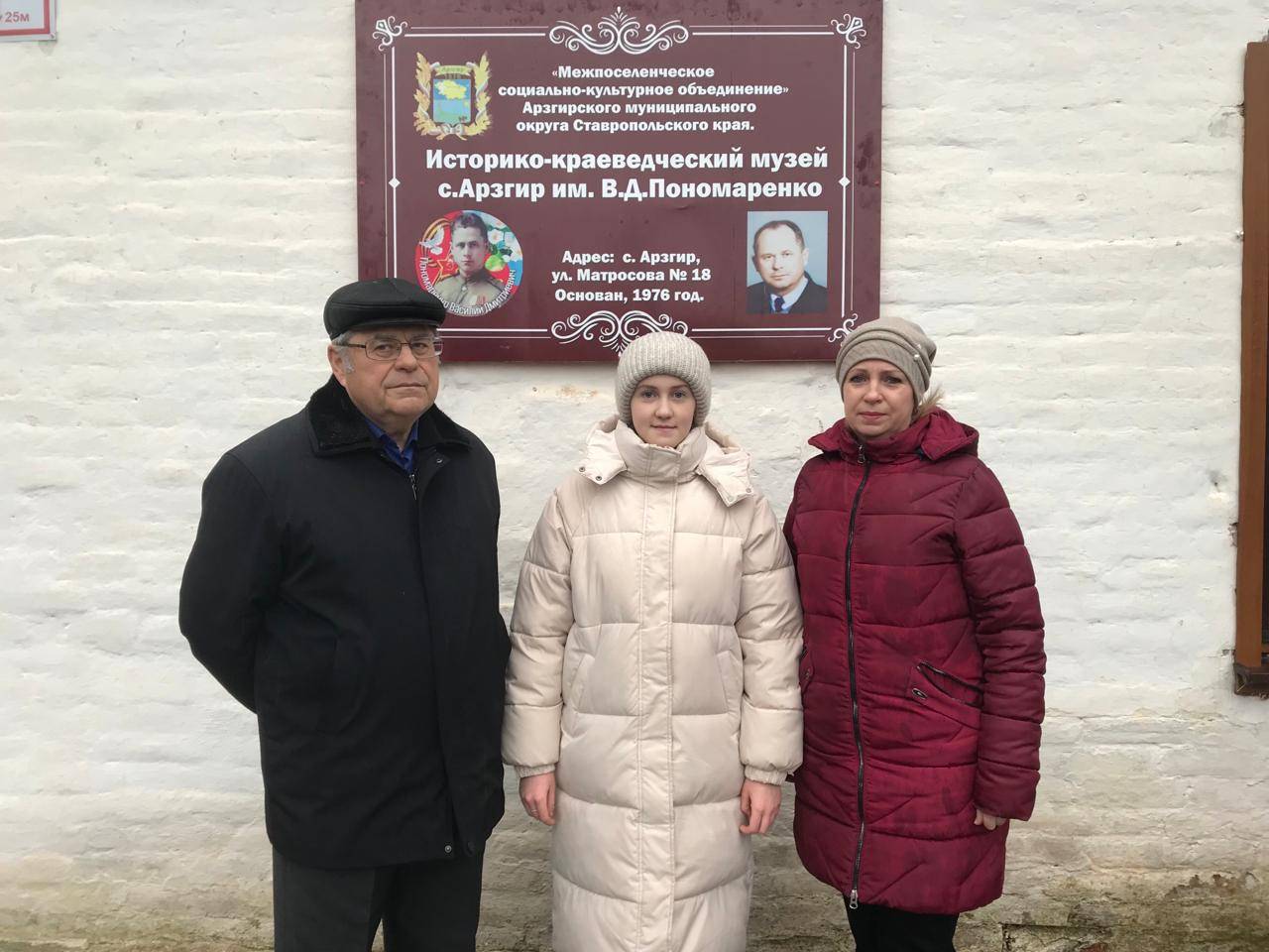 5 февраля 2024 г. члены клуба «Юный патриот» Регионального отделения Российского военно-исторического общества в Ставропольском крае (РО РВИО СК) под руководством представителей Местного отделения РО РВИО СК в Арзгирском муниципальном округе (председатель – О.Е. Гончаренко) приняли участие в мероприятии под названием «Люби людей и дело, которому ты служишь!». Оно было посвящено памяти Василия Дмитриевича Пономаренко, участника Великой Отечественной войны, председателя Арзгирского сельского совета, основателя Историко-краеведческого музея с. Арзгир. 5 января 2024 г. ему исполнилось бы 100 лет.