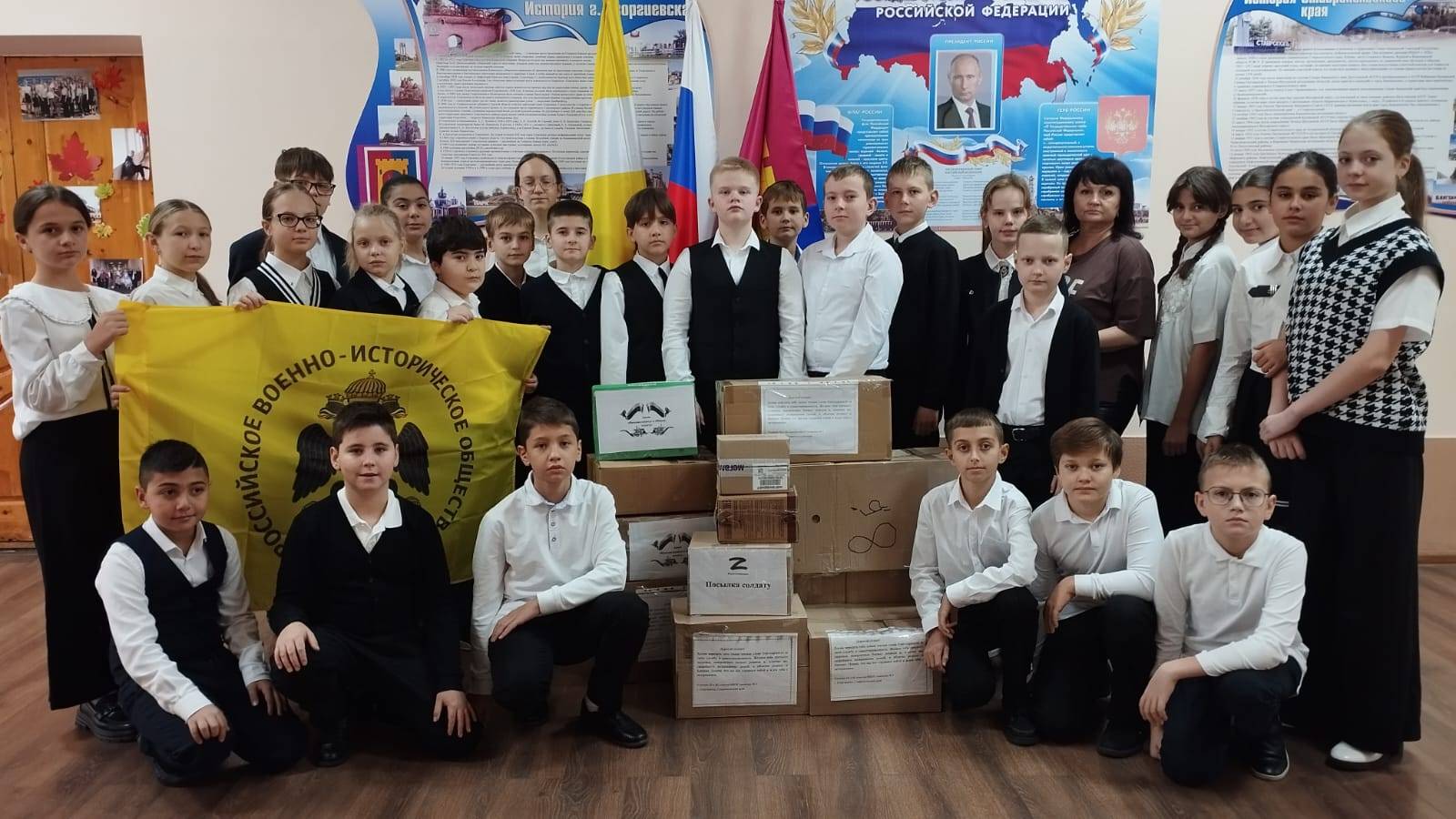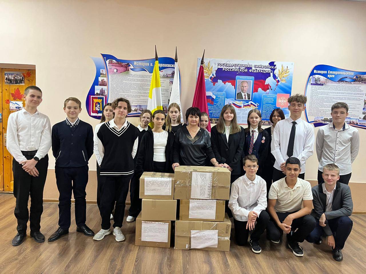 Патриотические акции «Письмо солдату» и «Посылка солдату» были организованы на базе МБОУ гимназии №2 г. Георгиевска по инициативе учителя истории и обществознания Алексиной Е.Ю., председателя Местного отделения РО РВИО СК в Георгиевском муниципальном округе. В сборе гуманитарной помощи для военнослужащих, находящихся на спецоперации, приняли участие учащиеся и их родители, педагоги и администрация школы. Совместными усилиями были собраны продукты питания, средства личной гигиены и другие предметы первой необходимости. Школьники написали тёплые, трогательные послания для бойцов и записали видеообращение с пожеланиями скорейшего возвращения домой целыми и невредимыми.
