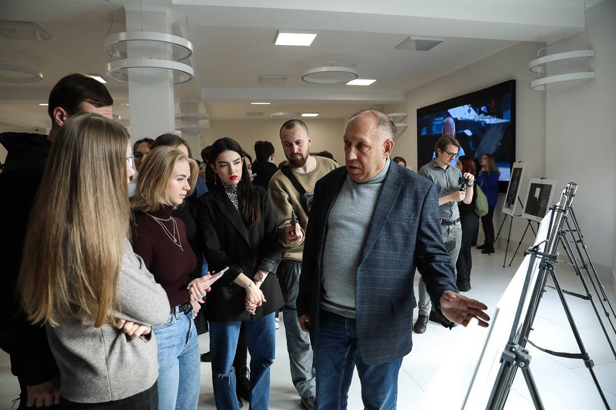 Торжественное открытие выставки включало в себя мастер-класс от Владимира Аносова о работе военного корреспондента в горячих точках.