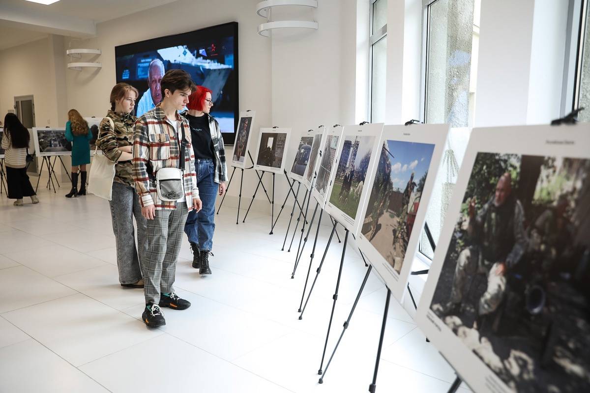 Выставка состоит из 40 работ, отражающих будни фронтовых корреспондентов, хронику событий СВО, повседневную жизнь в разрушенных городах под постоянными обстрелами, включает в себя портреты российских военных и мирных жителей. Гости мероприятия отметили пронзительность и искренность представленных работ.