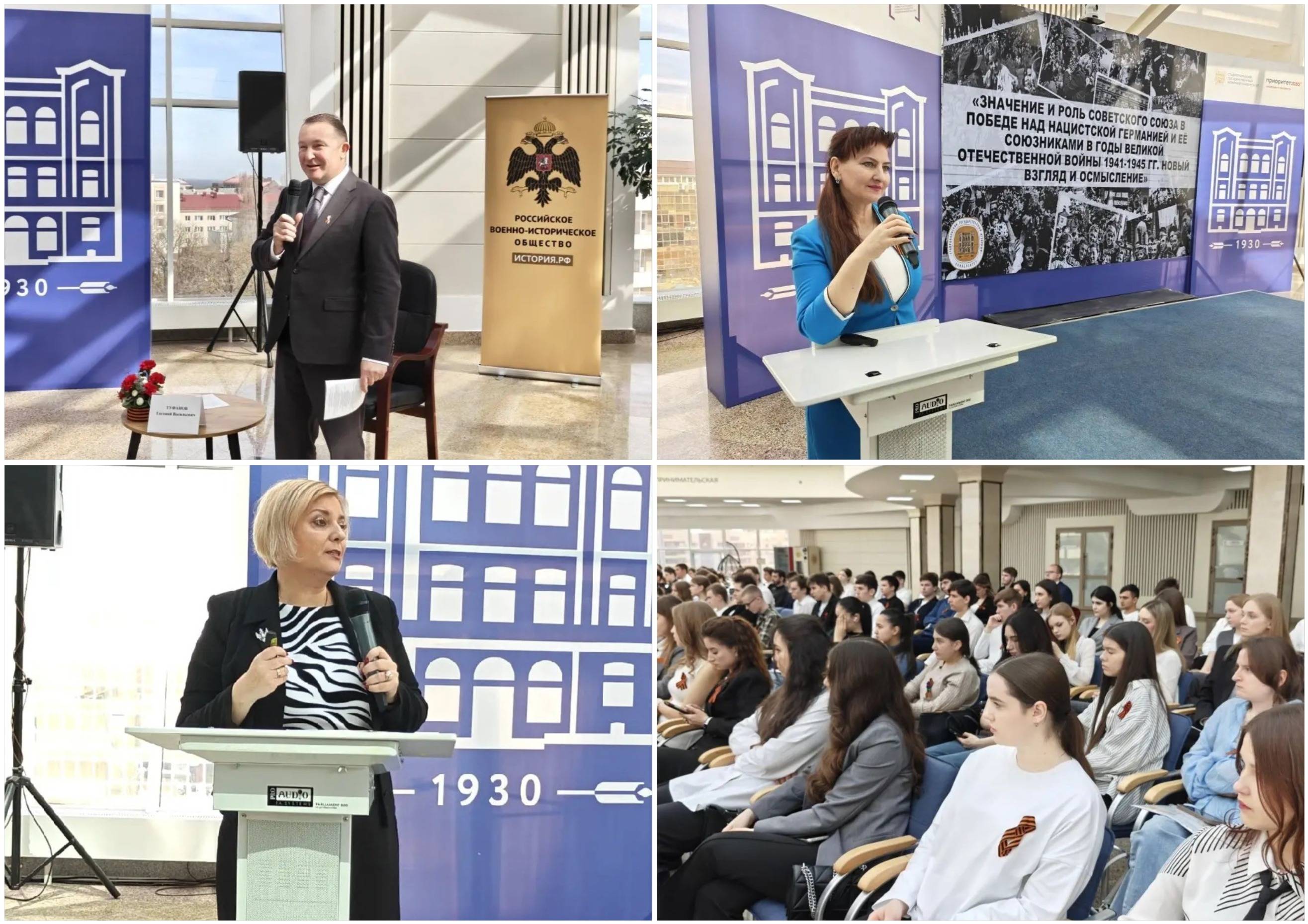 2 апреля 2026 г. состоялось пленарное заседание под модераторством профессора Е.В. Туфанова. С научными докладами выступили ведущие историки и эксперты, в числе которых были и члены РО РВИО СК: Судавцов Н.Д., д.и.н., Почётный профессор Северо-Кавказского федерального университета (СКФУ), главный научный сотрудник отдела военной истории и патриотической работы СГМЗ; Колесникова М.Е., д.и.н., профессор, директор Гуманитарного института, зав. кафедрой истории России СКФУ; Туфанов Е.В.; Каменева Г.Н.; Леонова Н.А., к.и.н., доцент, проректор по стратегическому развитию и цифровизации образовательного процесса Ставропольского государственного педагогического института (СГПИ); Букша В.В., военный художник, корреспондент радиовещания ГТРК «Ставрополье»; Корнева А.В., младший научный сотрудник отдела военной истории и патриотической работы СГМЗ.