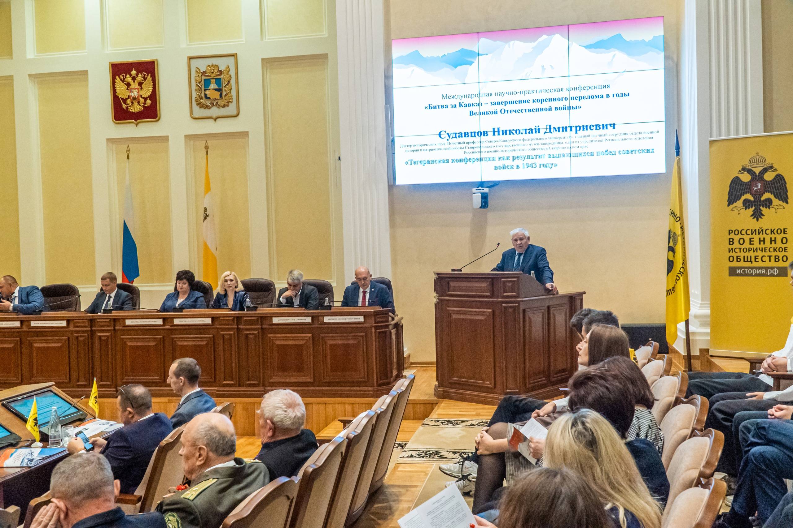В рамках пленарного заседания прозвучало шесть докладов по актуальным научно-исследовательским вопросам: «Воздушные сражения за Кубанский плацдарм 1943 года» (Туфанов Е.В.), «Людские потери советских войск в ходе Битвы за Кавказ (1942-1943 гг.)» (Киселев И.В.), «Тегеранская конференция как результат выдающихся побед советских войск в 1943 году» (Судавцов Н.Д.), «Историческое просвещение как фундамент сохранения межнационального согласия: Битва за Кавказ на страницах «Военно-исторического журнала» (Кикнадзе В.Г.), «Перспективы изучения Битвы за Кавказ с точки зрения истории военного искусства» (Карташев А.В.), «Преемственность исторической памяти как процесс духовной трансмиссии поколений: опыт деятельности Ставропольского регионального отделения РВИО» (Каменева Г.Н.).