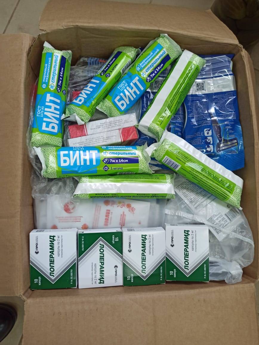 Для военнослужащих в зоне СВО были переданы продукты питания (заготовки для супов, консервированные овощи, варенье, печенье, конфеты, сухари, чай, кофе, сахар, мёд, фрукты (яблоки, мандарины, апельсины, лимоны), сало, домашняя тушенка, домашняя аджика), вода питьевая (минеральная, сладкая газированная), средства личной гигиены, окопные свечи, медикаменты, сухой душ.