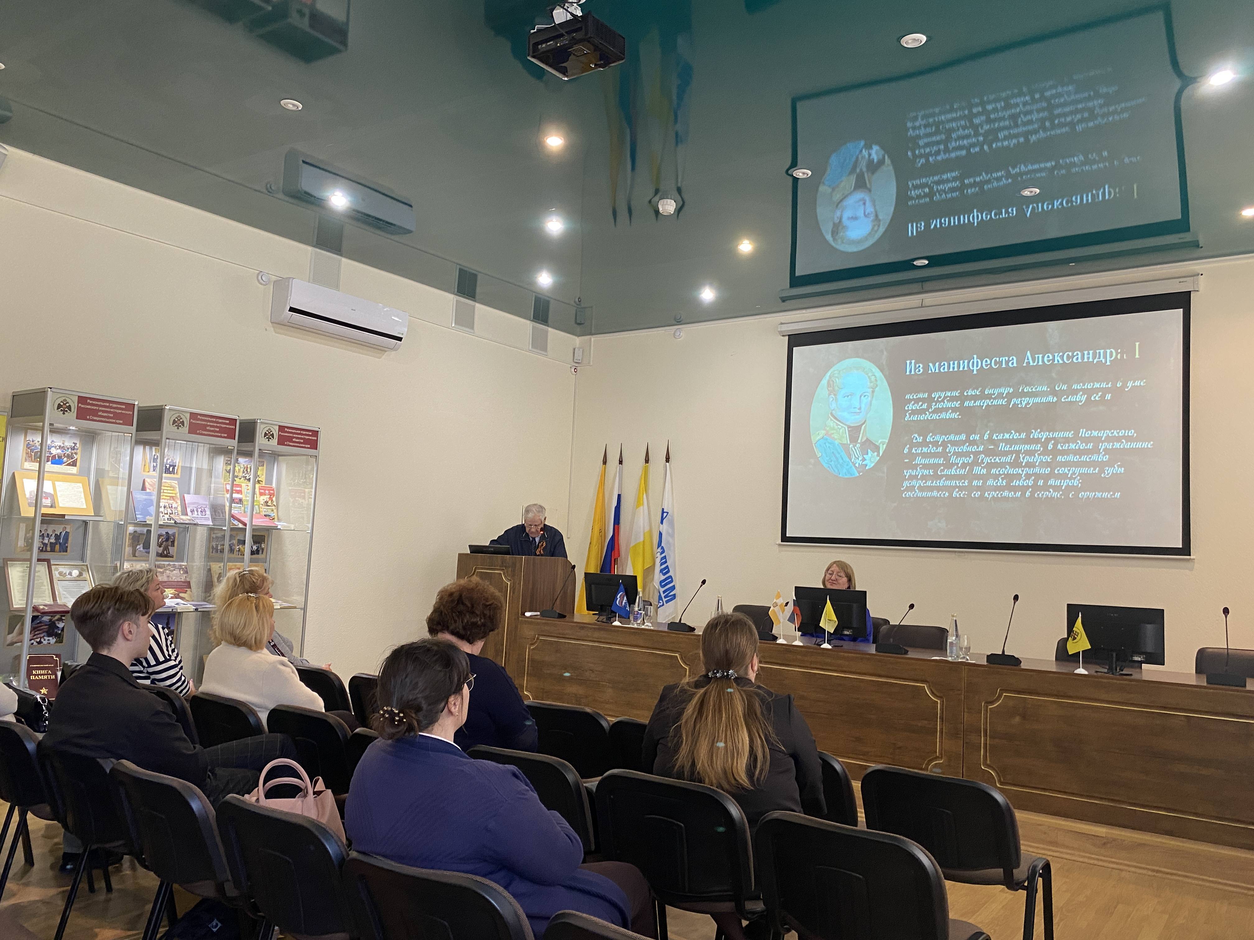 В рамках мероприятия были обсуждены вопросы о ходе Отечественной войны 1812 года, о значимости Заграничных походов 1813-1814 гг. в Отечественной истории, роли России в освобождении Европы от владычества Наполеона. Разговор сопровождался показом тематических видеороликов.