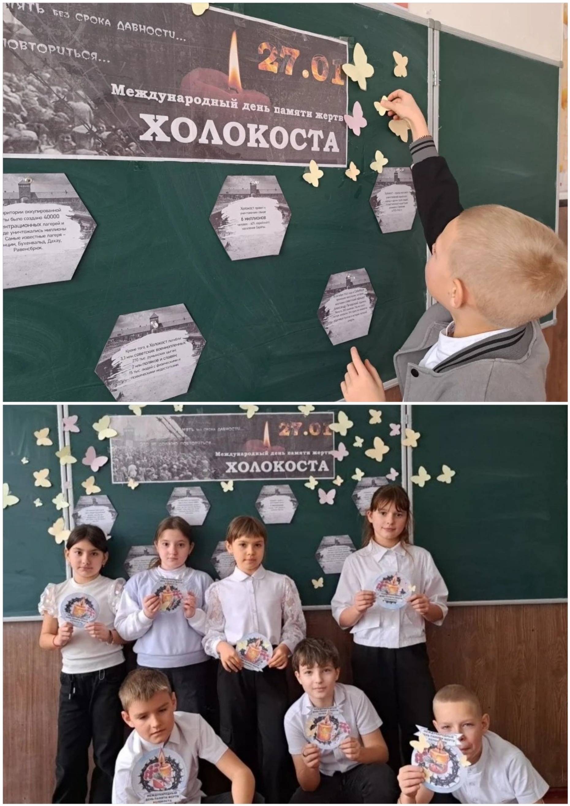 В этот же день в МКОУ СОШ №5 с. Балахоновского (директор – Шульгина И.В., член РО РВИО СК) прошла акция «Свеча памяти у Невы». Школьники вспоминали многонациональный состав героев-защитников города. Для младших классов был организован просмотр и обсуждение мультфильма «Блокадные сказки Серафимы» – трогательной истории о силе духа, творчестве и надежде в годы суровых испытаний. Также в память о жертвах Холокоста обучающиеся Балахоновской школы приняли участие в мемориальной акции, изготовив открытки в виде бабочек – символа душ детей, так и не успевших вырасти, символа хрупкости жизни и прерванного полёта.