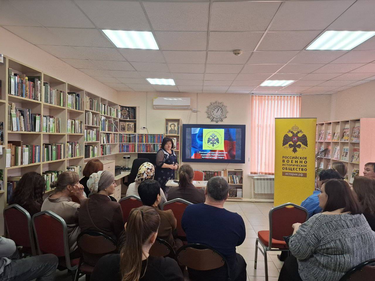 25 февраля 2026 г. в Центральной районной библиотеке Курского округа прошло собрание активистов Местного отделения РО РВИО СК в Курском муниципальном округе (председатель – Жулина Г.В.), посвящённое подведению итогов 2025 г. и планированию деятельности на текущий год. В рамках мероприятия с отчётом о работе выступила председатель Отделения, начальник МКУ «Управление культуры» Г.В. Жулина. Важным событием встречи стало торжественное вручение членских билетов недавно вступившим в наши ряды единомышленникам. Также Галина Васильевна вручила благодарственные письма активистам за их вклад в военно-патриотическое воспитание молодёжи. В завершение собрания она поблагодарила всех за проделанную работу.