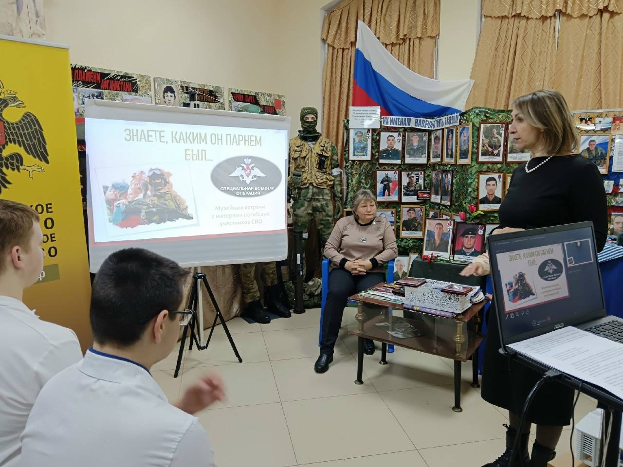 В Новоалександровском районном музее состоялось мероприятие «Знаете, каким он парнем был…», приуроченное к 4-й годовщине начала СВО. Гостями встречи стали учащиеся 9 класса МОУ СОШ №3 г. Новоалександровска и матери погибших земляков – Е.С. Мещерякова и Е.В. Бухалина. Уроженцы пос. Краснозоринского, Александр Мещеряков и Максим Бухалин, навсегда останутся в памяти близких и односельчан.