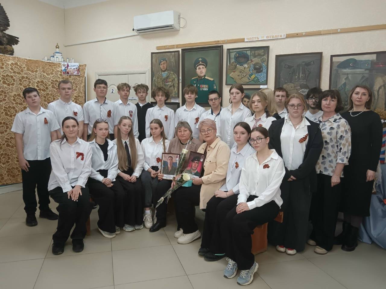 Сотрудниками музея Герасимовой М.Ф. и Скрипниковой Л.А., членами Ставропольского регионального отделения Российского военно-исторического общества (РО РВИО СК), была подготовлена выставка в память о погибших земляках, куда вошли личные вещи, рисунки, фотографии, документы и награды, которые принесли матери, чтобы показать их ребятам. Елена Станиславовна и Елена Владимировна рассказали о том, какими их сыновья были в обычной, мирной жизни, об их увлечениях, мечтах и друзьях. Присутствующим был показан видеоклип об установлении и освещении памятного колокола в церкви пос. Краснозоринского в 2024 г. Идея установления колокола принадлежала именно Елене Владимировне и Елене Станиславовне. Завершилось мероприятие минутой молчания в память о погибших земляках.