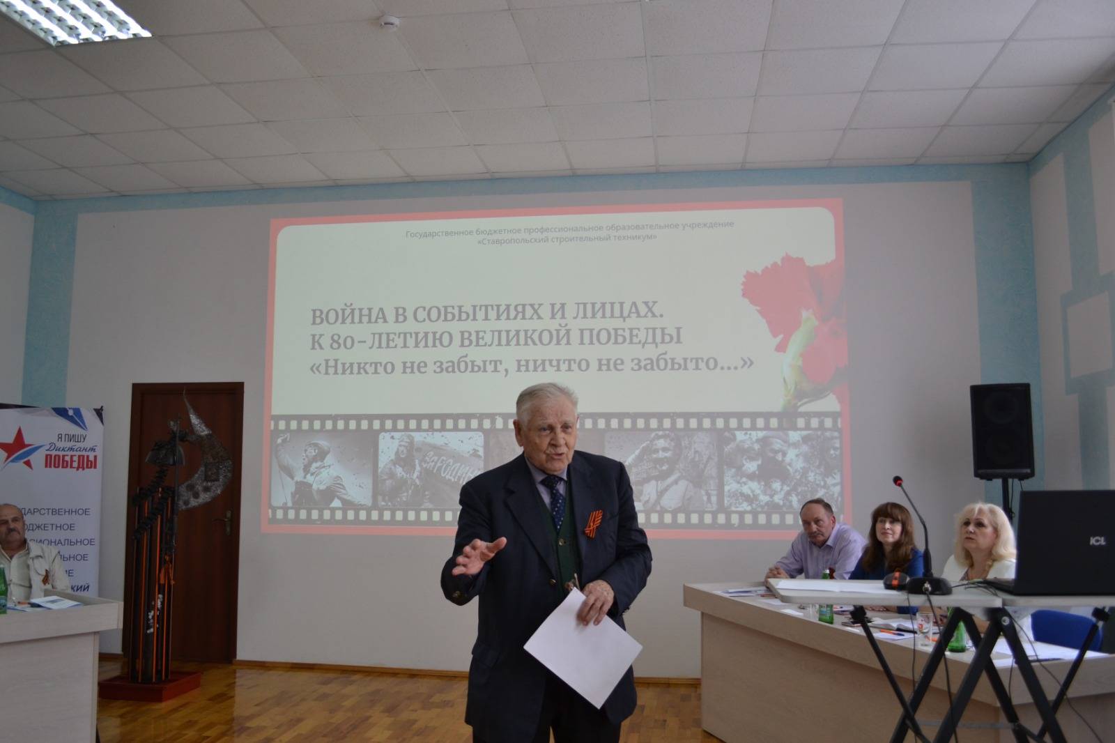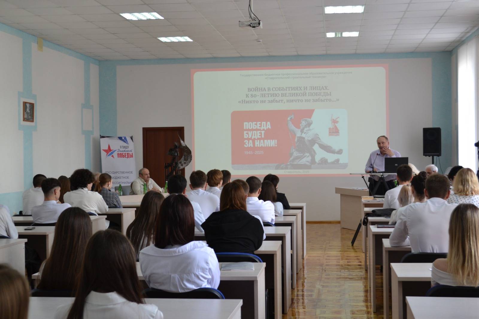 24 апреля 2025 г. в рамках Года защитника Отечества и празднования 80-летия Победы советского народа в Великой Отечественной войне (1941–1945 гг.) в Ставропольском строительном техникуме (ССТ) состоялся круглый стол «Война в событиях и лицах».
