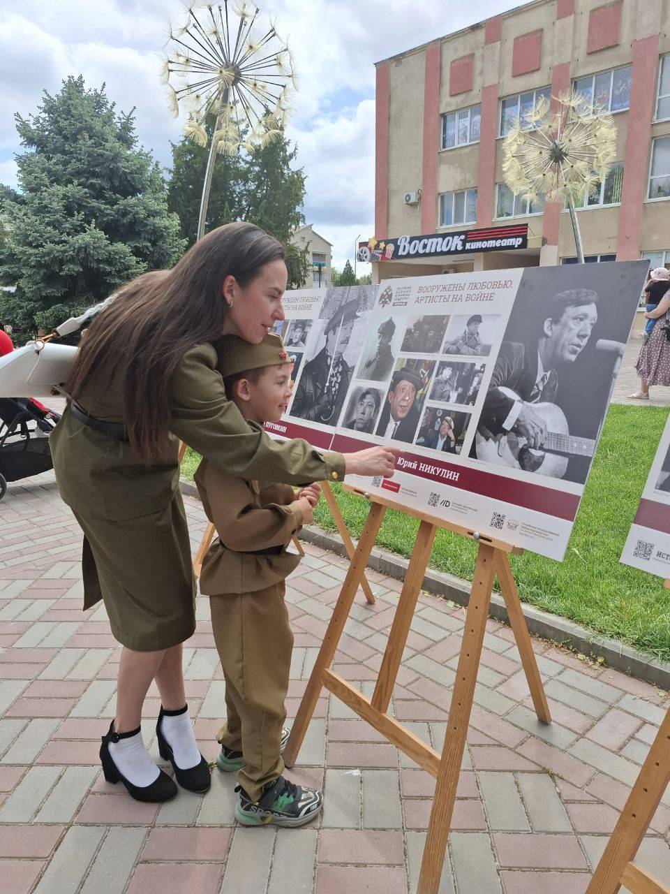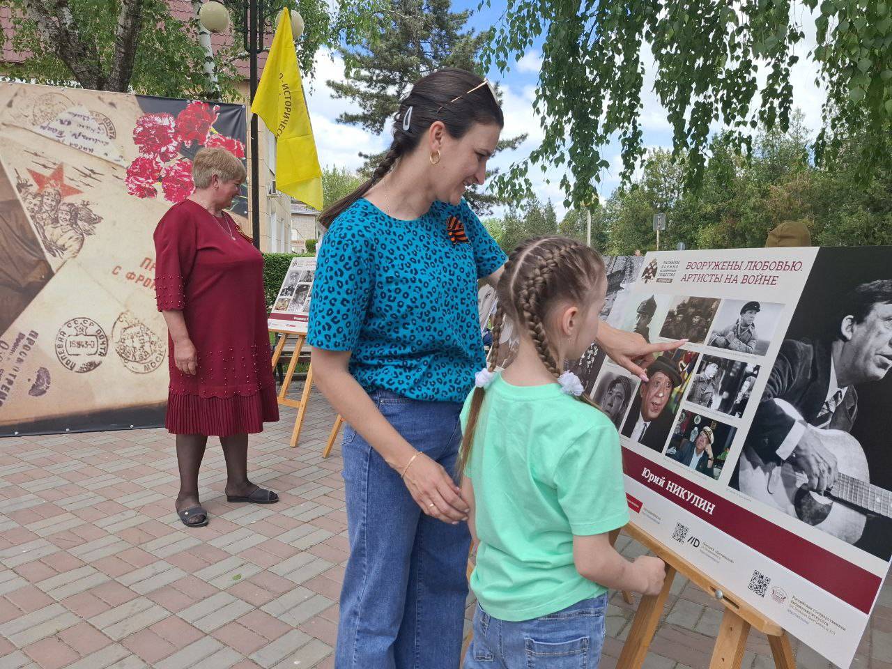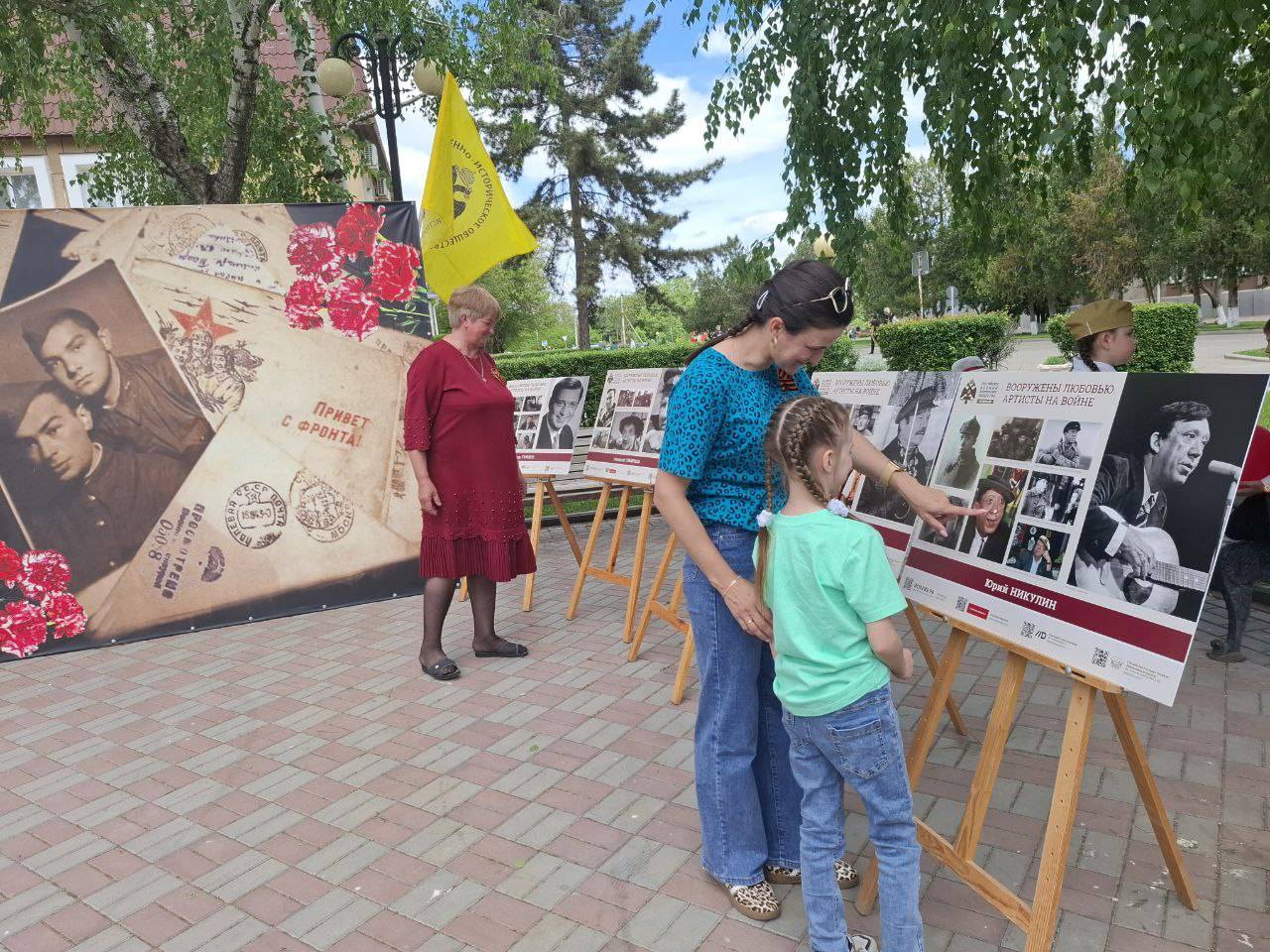 9 мая 2025 г. в ст. Курской состоялось открытие передвижной фотовыставки «Вооружены любовью. Артисты на войне», подготовленной Российским военно-историческим обществом (РВИО). Событие посвящено Году защитника Отечества и 80-летию Победы в Великой Отечественной войне.